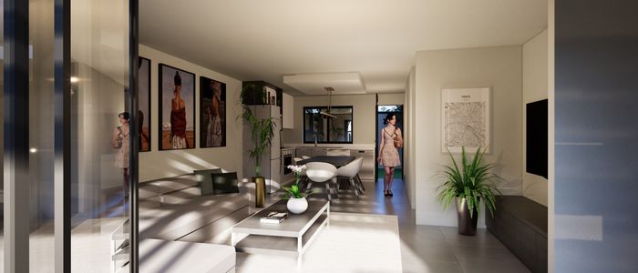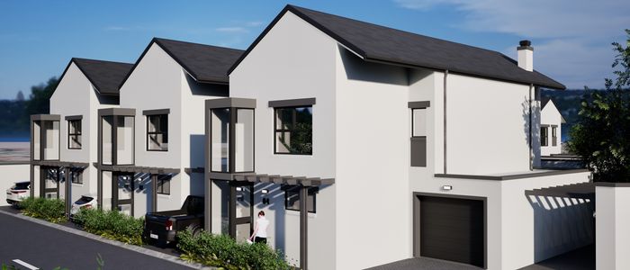 Low-density boutique living in Die Bos, Strand — modern open-plan townhouses with exclusive gardens and pergola patios with braai, 5kVA inverter backup, three bedrooms, two baths.