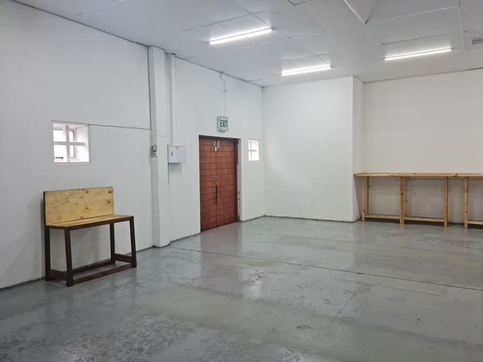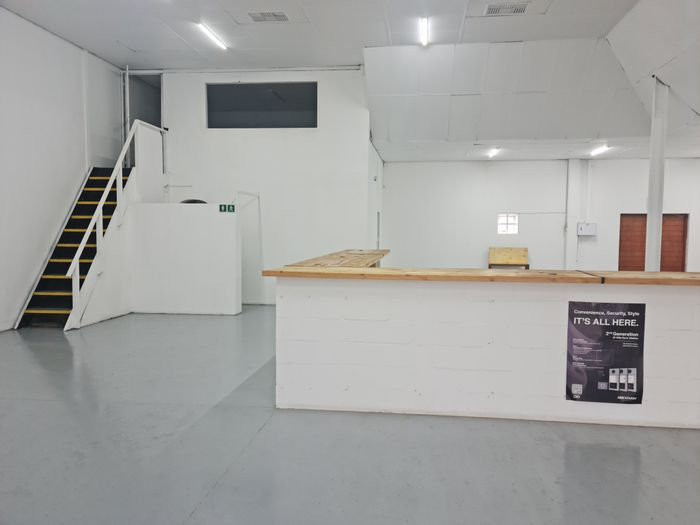 Ideal for workshops or showrooms, this Gants (Strand) space offers convenient N2 access, ample parking, a small office with ablution area and reliable prepaid electricity — 239 m².