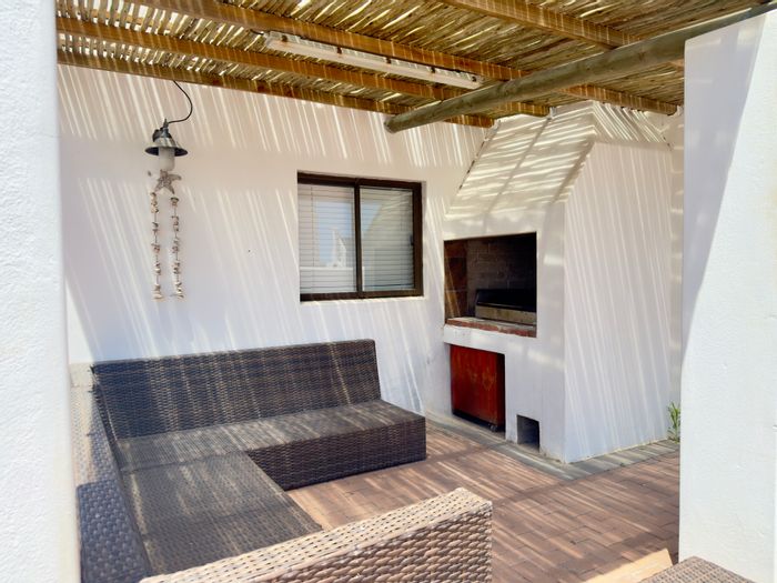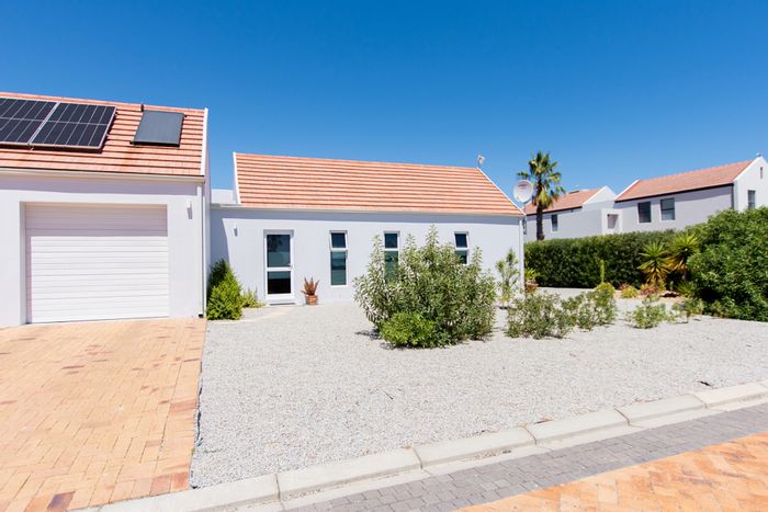 Secure coastal family living in Atlantic Shores Estate, Velddrif — close to beach and river. Open-plan home with kitchen island and covered patio with braai; three bedrooms, two bathrooms, double garage.