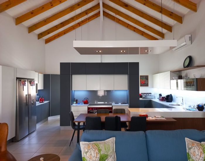 Relaxed family living with indoor braai and seamless open-plan flow in a quiet residential setting, plus enclosed garden, contemporary scullery kitchen, three bedrooms, two baths and double garage.