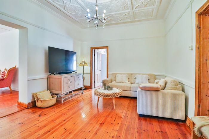 Enjoy relaxed village living with vintage charm in Villiersdorp — verandah and patio overlook a private garden and mountain views; original Oregon woodwork, loft and potential flatlet.
