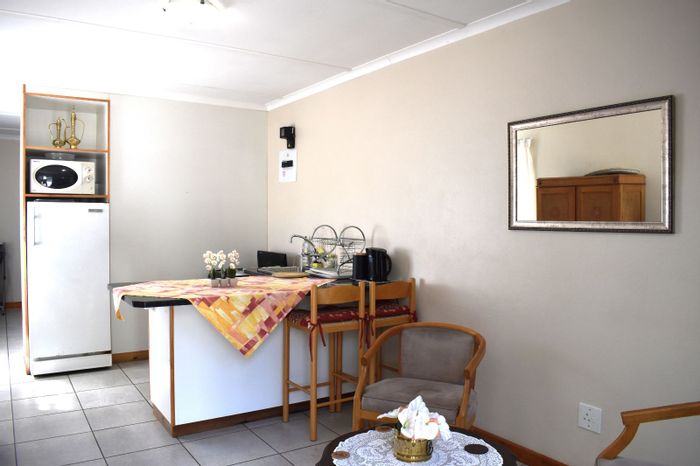Live centrally with peaceful garden and mountain views, plus a versatile 68 m² income-generating business wing with separate street access. Enclosed stoep, built-in braai, two bedrooms, two baths.