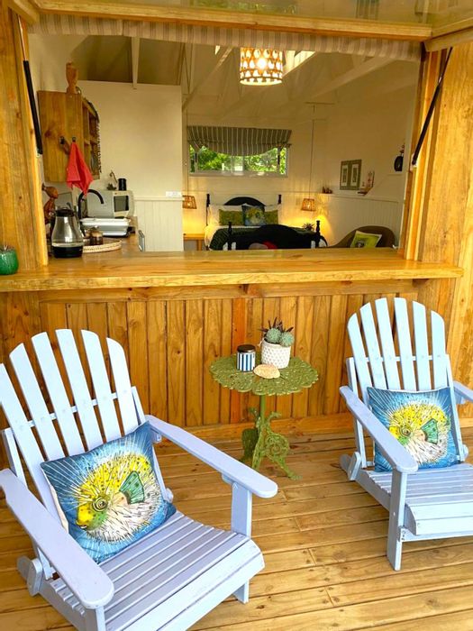 Relaxed seaside cottage in Kleinkrantz, Wilderness on the Garden Route — three-minute stroll to the beach, farm-style kitchen, cozy lounge and private entertainment area; two bedrooms, one bath.