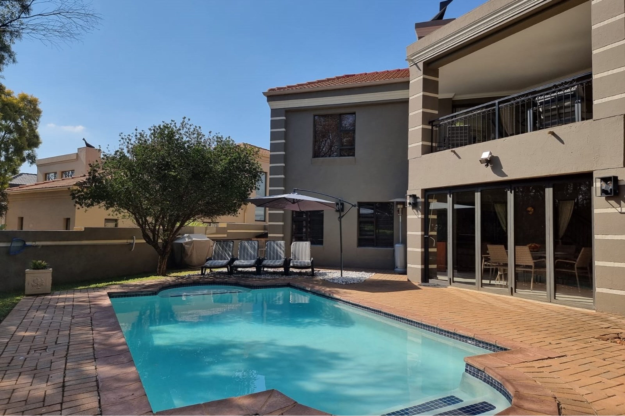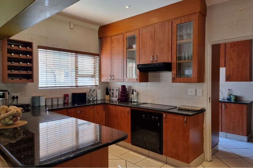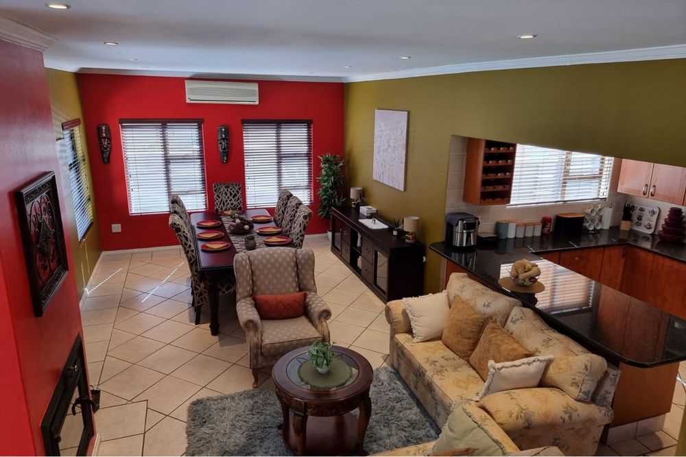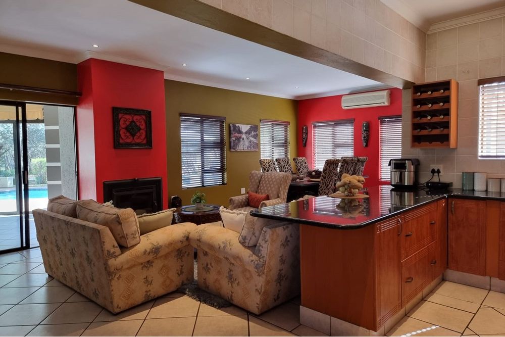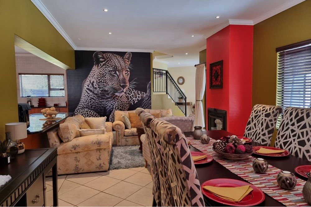 Welcome to our new EXCLUSIVE MANDATE! This lovley double storey family home is warm and inviting, offering 3 bedrooms upstairs, and the living and entertainment downtairs. A balcony off the main bedroom overlooks a sparkling pool and spacious garden, which often captures visits from the resident buck. Downstairs living areas include an open plan dining / lounge and kitchen with separate scullery and laundry, plus direct access from the garage into the scullery. Along the hallway, a second formal lounge, plus an office/study, ideal for work from home convenience. An enclosed patio with built-in braai has stack doors that open up when the weather allows, or braai inside regardless of the rain! With additional extras like airconditioner and log-fireplace for temepature conrol, this home offers cool in summer and warm in winter. Don`t delay, call me to arrange a viewing!