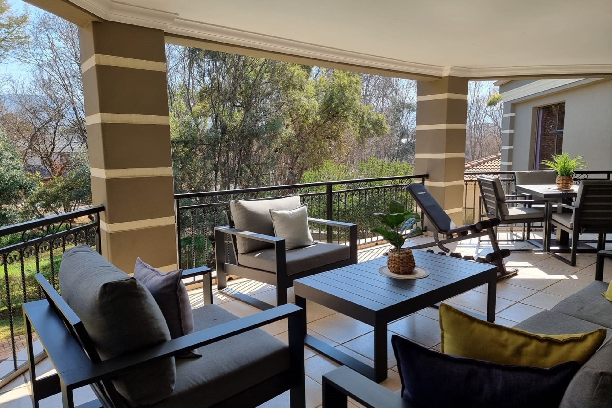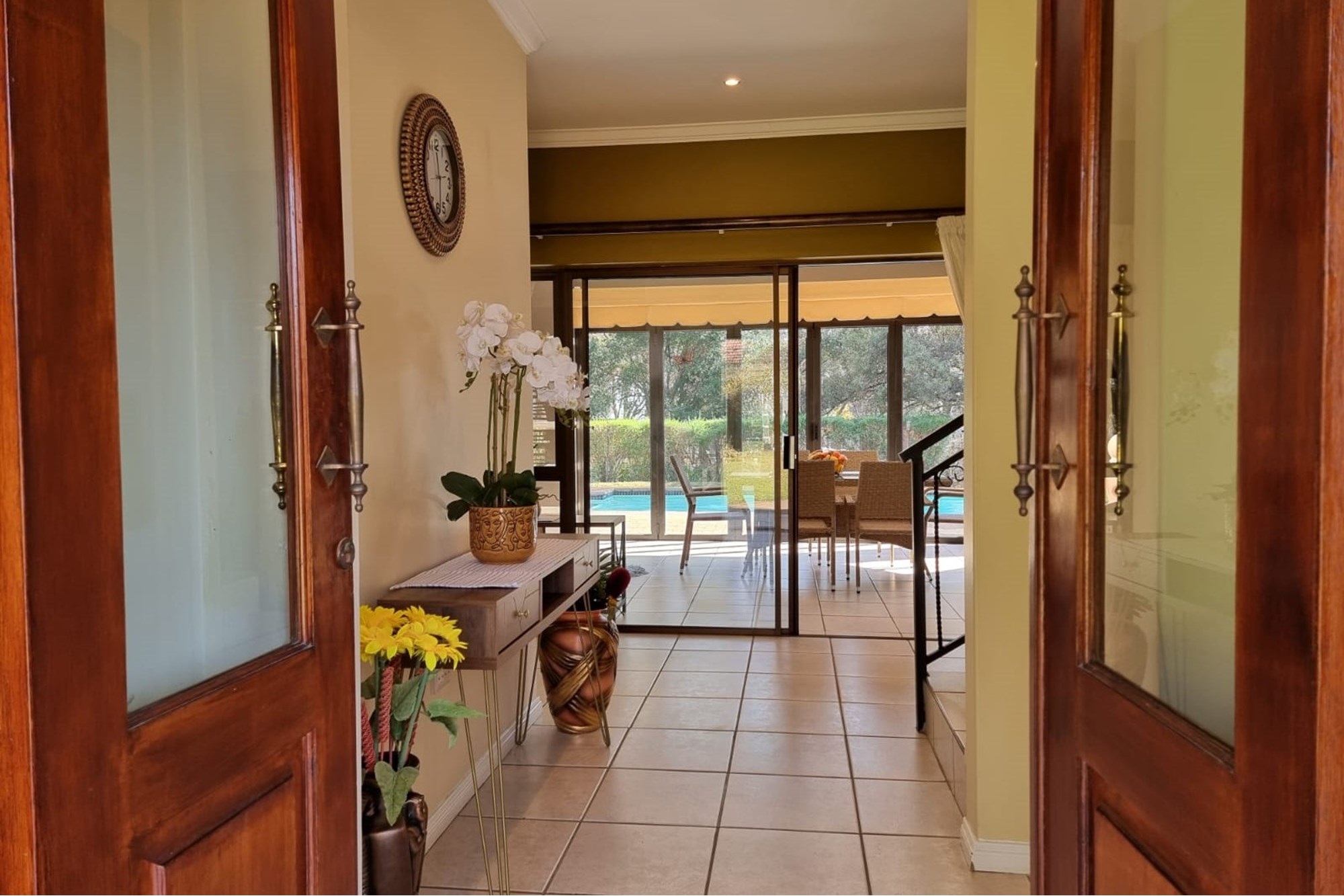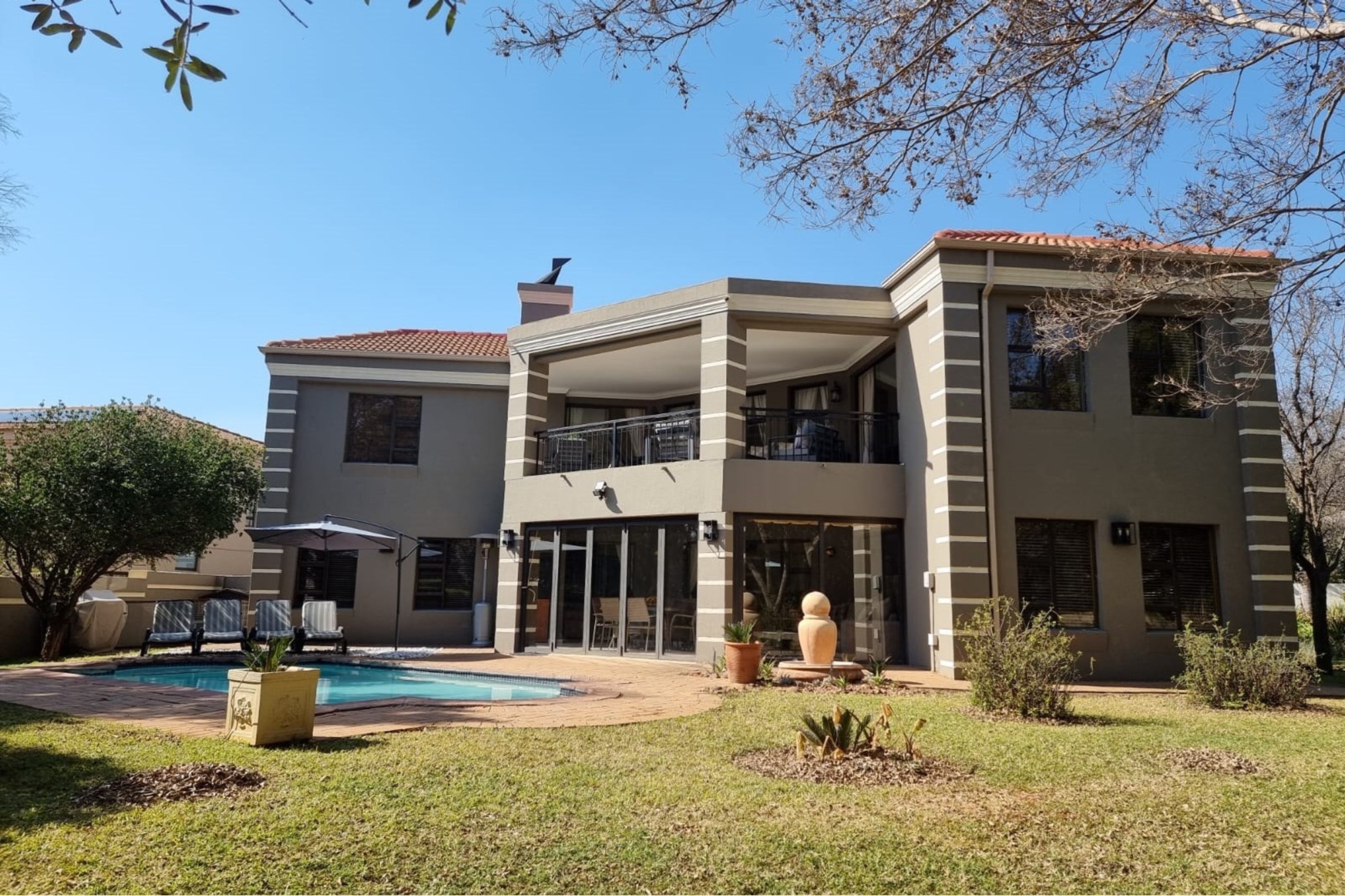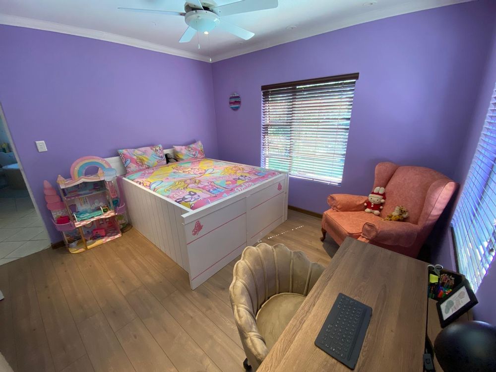 Welcome to our new EXCLUSIVE MANDATE! This lovley double storey family home is warm and inviting, offering 3 bedrooms upstairs, and the living and entertainment downtairs. A balcony off the main bedroom overlooks a sparkling pool and spacious garden, which often captures visits from the resident buck. Downstairs living areas include an open plan dining / lounge and kitchen with separate scullery and laundry, plus direct access from the garage into the scullery. Along the hallway, a second formal lounge, plus an office/study, ideal for work from home convenience. An enclosed patio with built-in braai has stack doors that open up when the weather allows, or braai inside regardless of the rain! With additional extras like airconditioner and log-fireplace for temepature conrol, this home offers cool in summer and warm in winter. Don`t delay, call me to arrange a viewing!