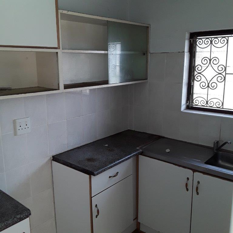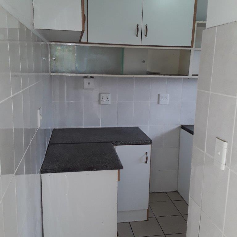 .Kitchen with ample cupboard space, plus extra shelving above the sink for glassware