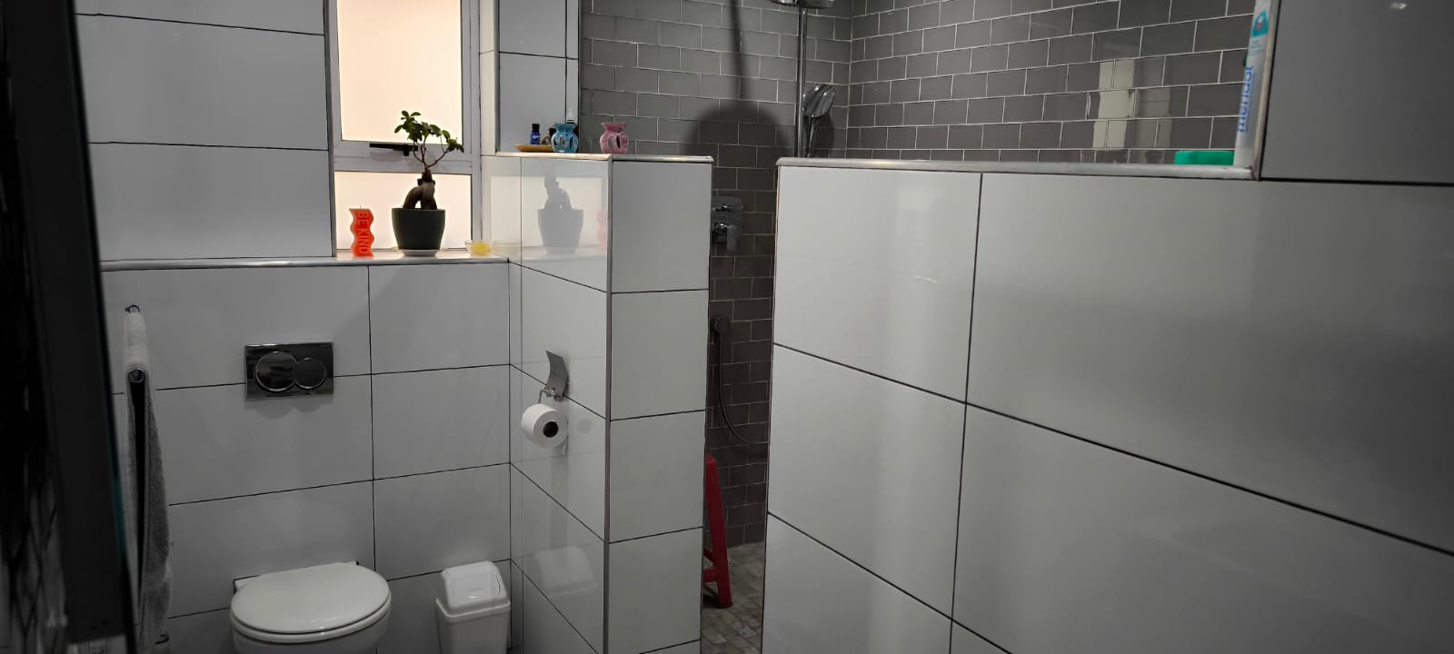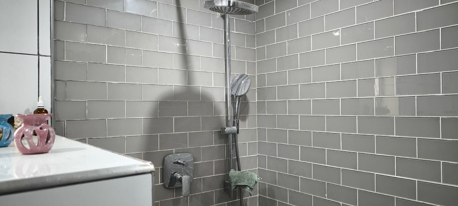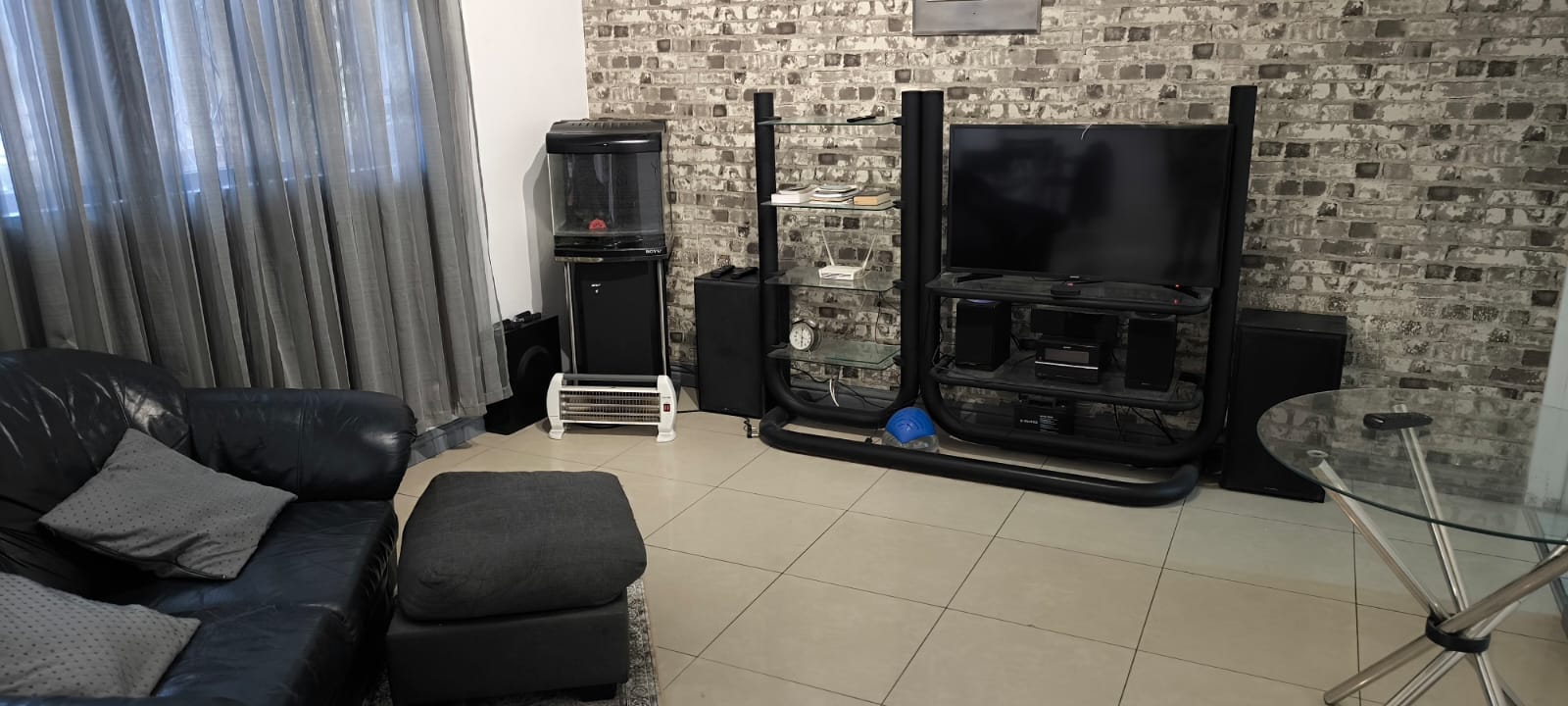 Beautiful porcelain tiles throughout the lounge and dining room . The Bathroom has a spacious shower for two and toilet /basin