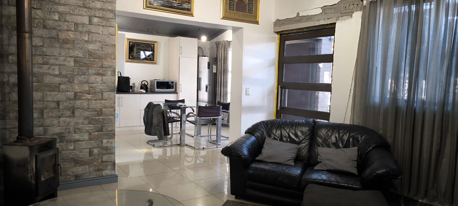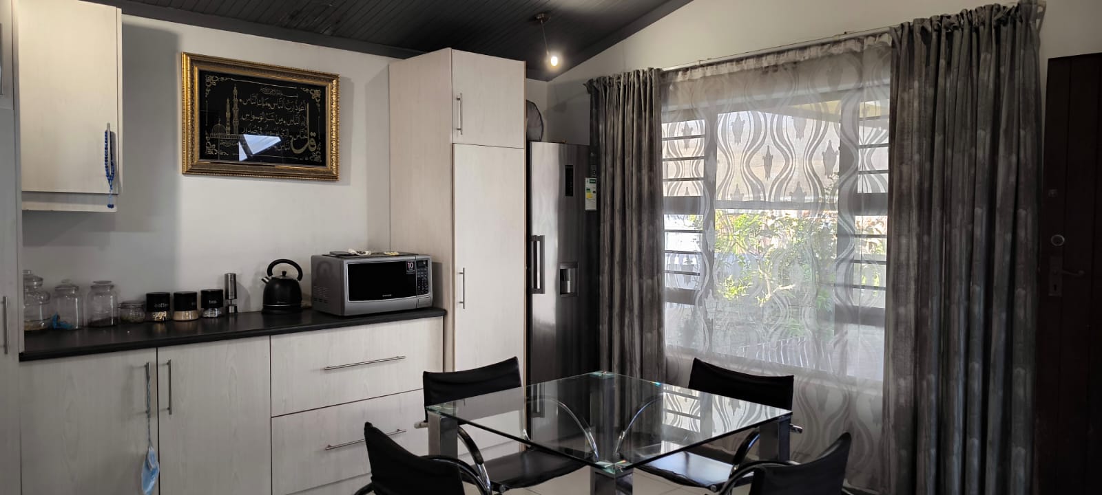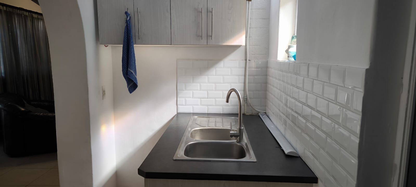 Spotless 2 bedroom house with built in cupboards and spacious lounge and dining room leading to the fitted kitchen.