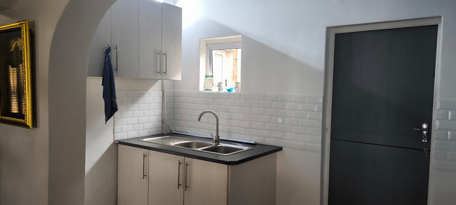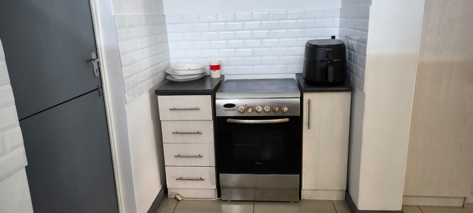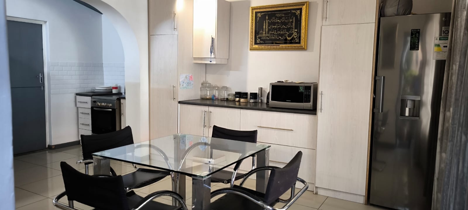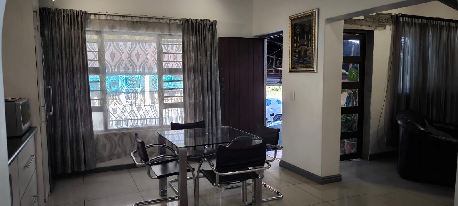 Spotless 2 bedroom house with built in cupboards and spacious lounge and dining room leading to the fitted kitchen.