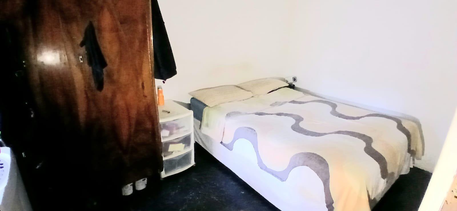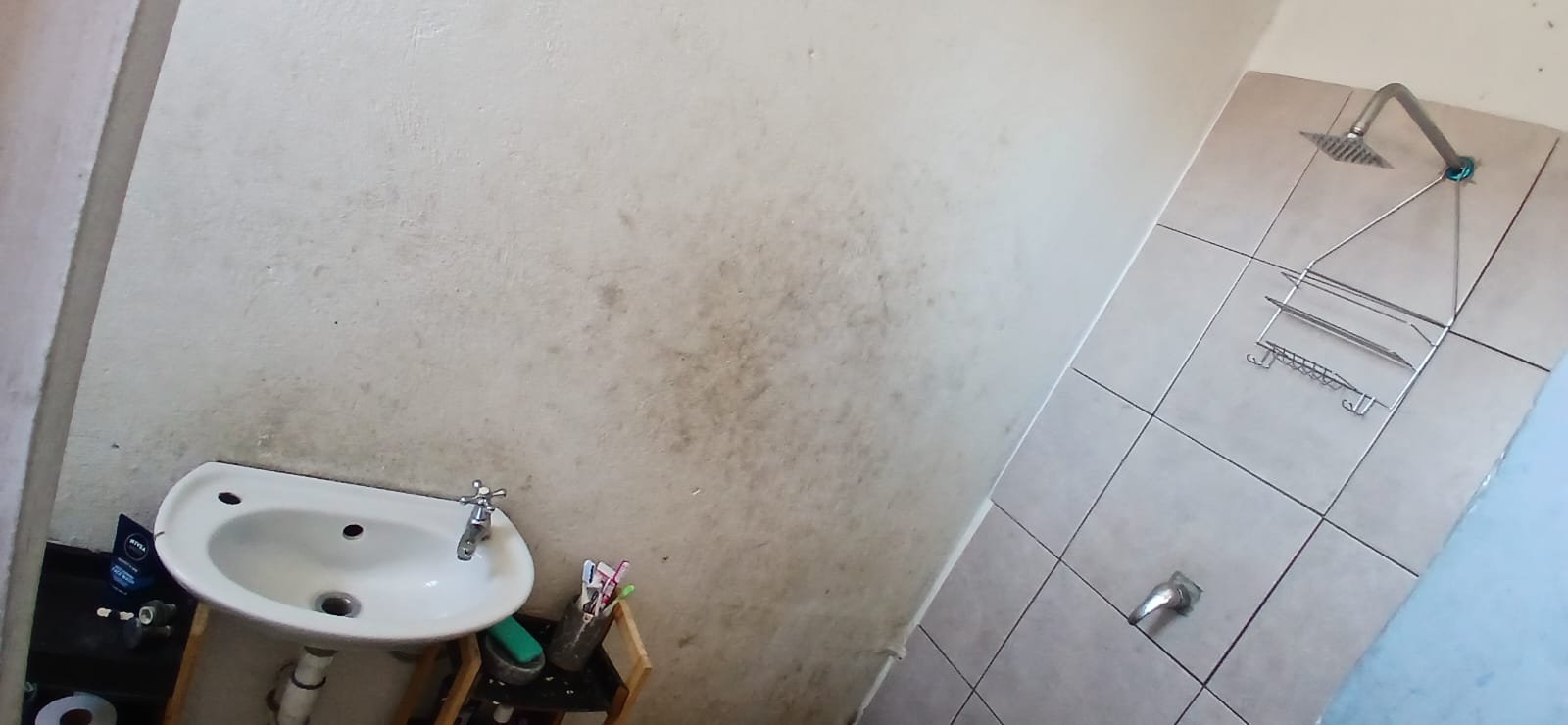 Shower, basin and toilet is located off the kitchen area.