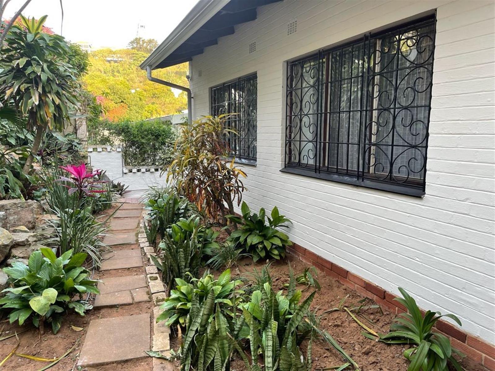 Step outside to discover a refreshing pool, perfect for those warm Durban days. The property is totally fenced and walled, ensuring both security and privacy. Additional highlights include air conditioning for year-round comfort, built-in cupboards for ample storage, and elegant parquet and tiled floors that enhance the home`s charm.
