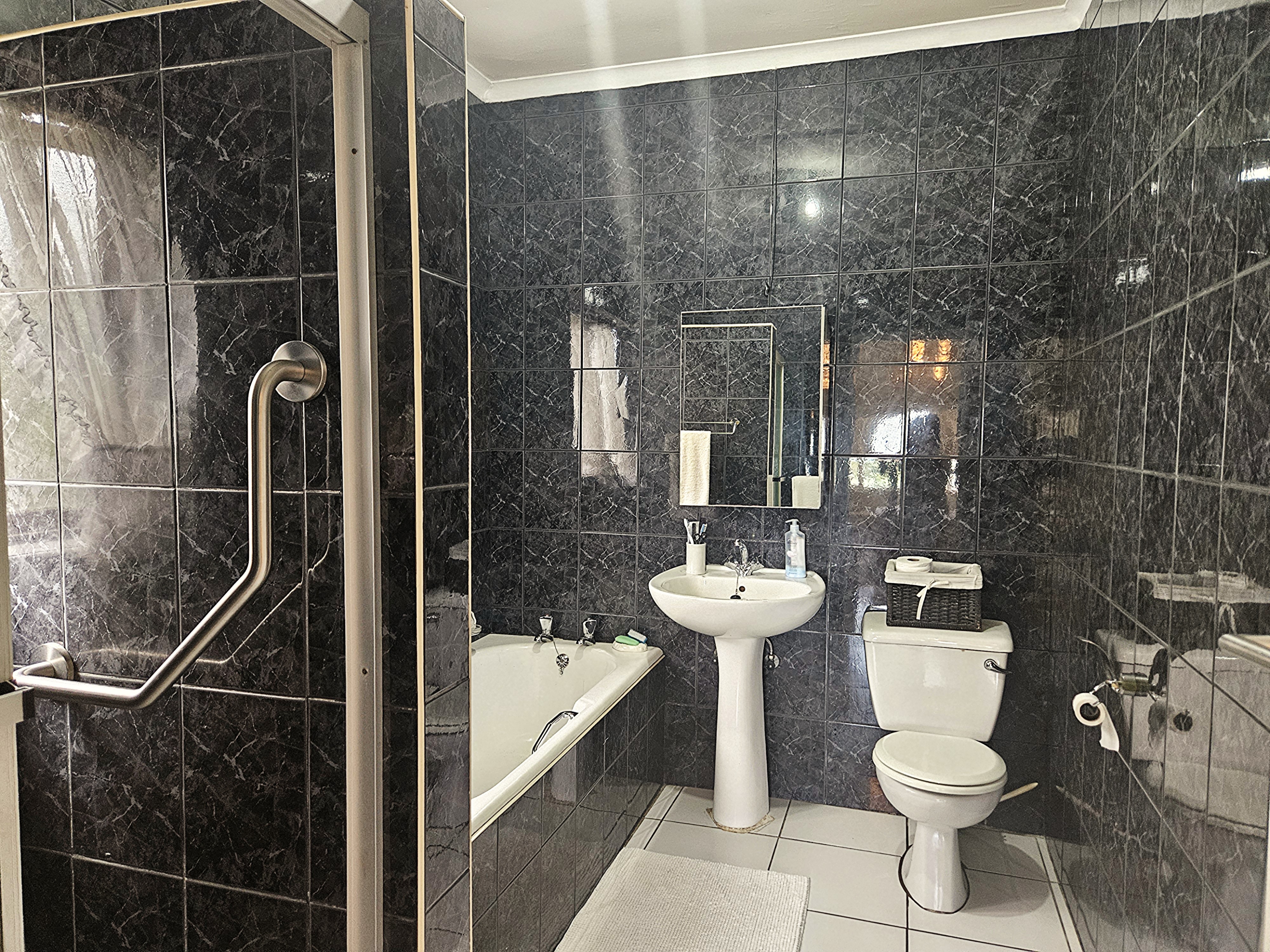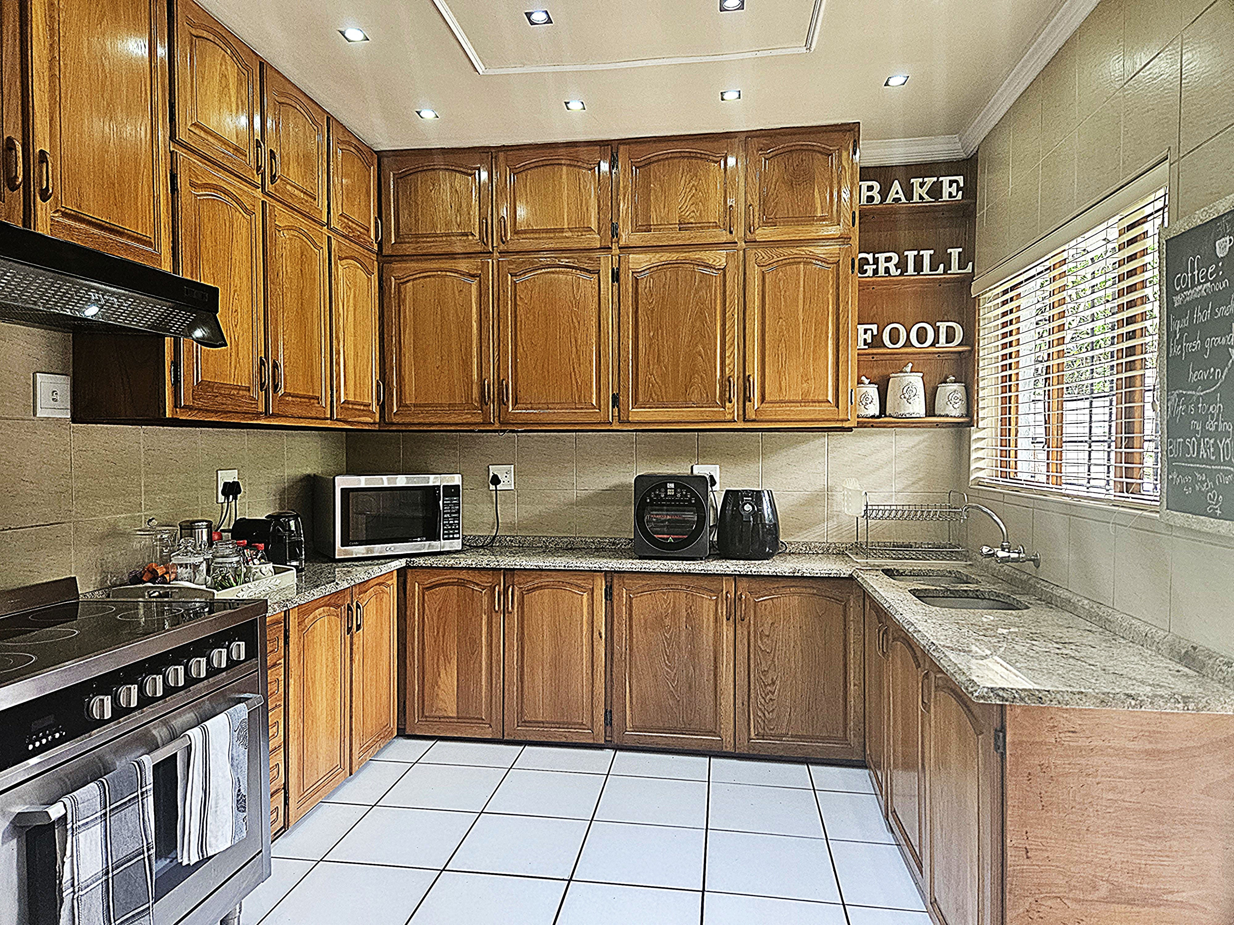 There are 16 cameras for security, the property is fully electric fenced, electric gate and garage, and the area is popular and sought after, close to schools, shopping centres, and places of worship.