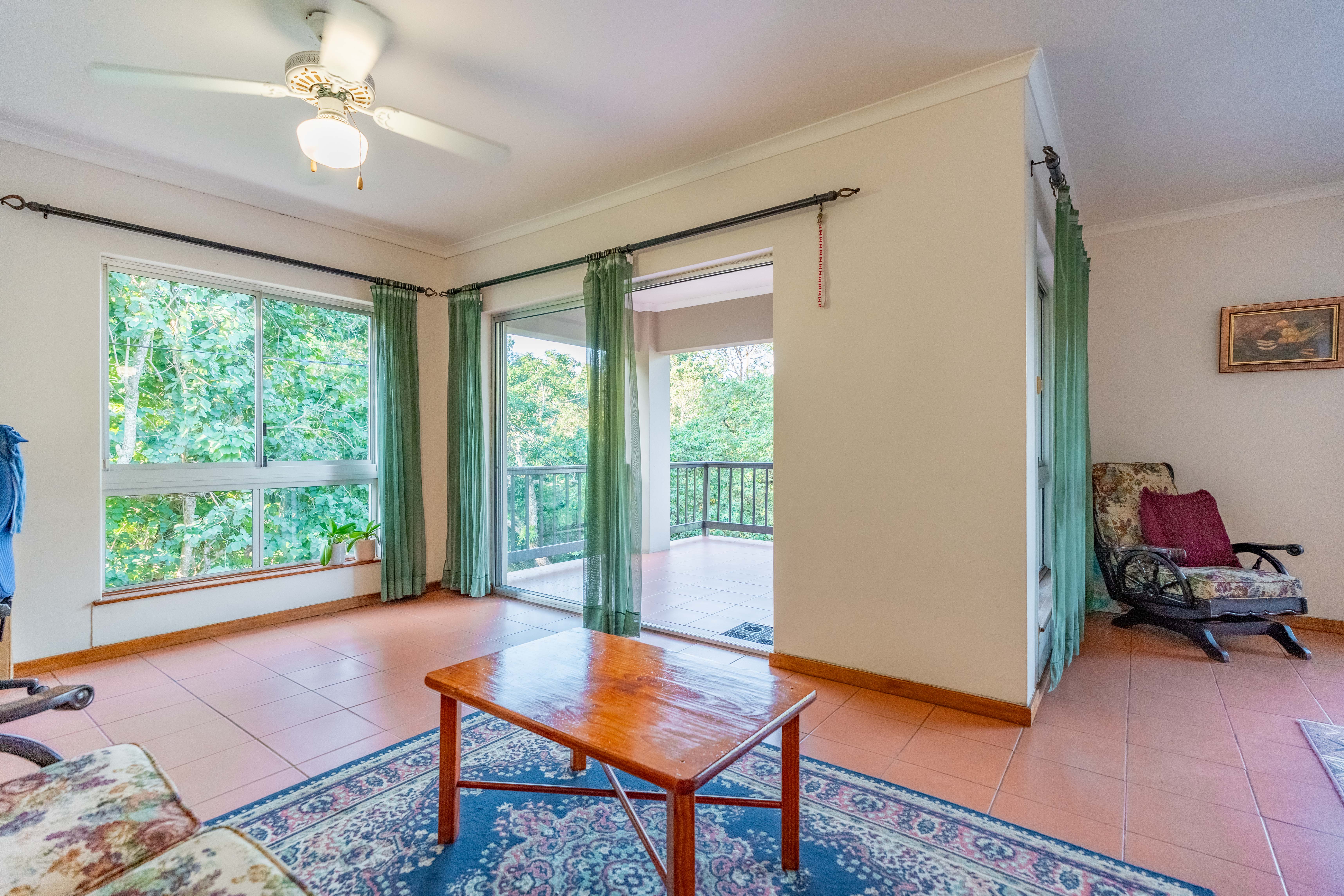 Step into the main house, a masterpiece of living space designed for both comfort and grandeur. The heart of the home is a fully fitted granite kitchen, featuring a gas hob, oven, extractor, double sink, and abundant cupboard and counter space. A separate laundry and scullery/pantry room adds practicality. The living spaces are a dream for entertainers and families alike. Enjoy three distinct areas: a TV lounge opening to a wooden balcony with breathtaking views of the parklike gardens, a versatile entertainment/games room (perfect as a kids’ playroom or study), and a formal sunken lounge flowing seamlessly onto an expansive covered entertainment patio. A dining room with a charming fireplace adds warmth and sophistication for intimate gatherings.