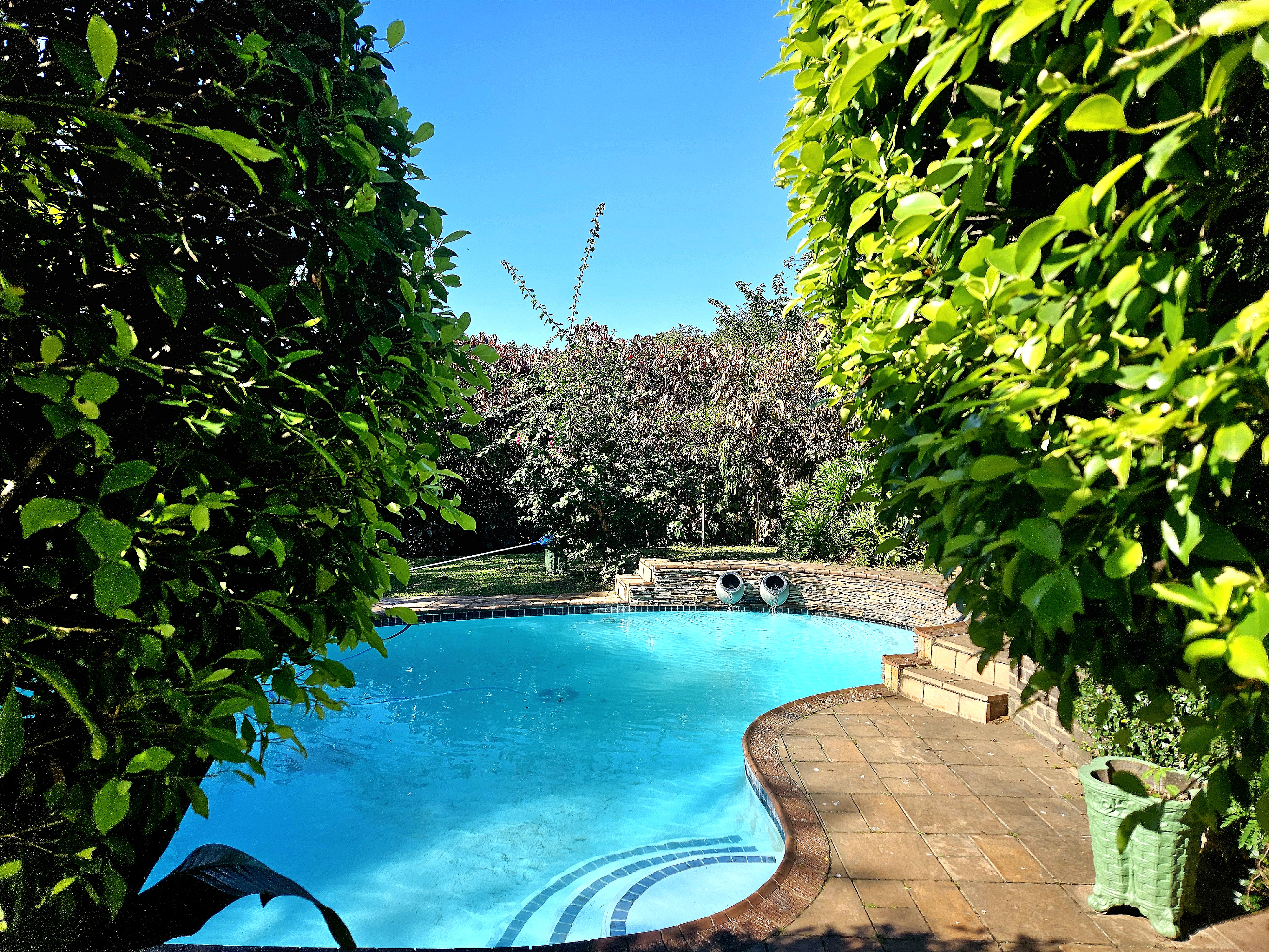 Step outside and be transported to your own personal paradise — a sparkling swimming pool takes centre stage, complemented by a stylish entertainment Lapa, perfect for weekend gatherings or relaxing evenings under the stars.