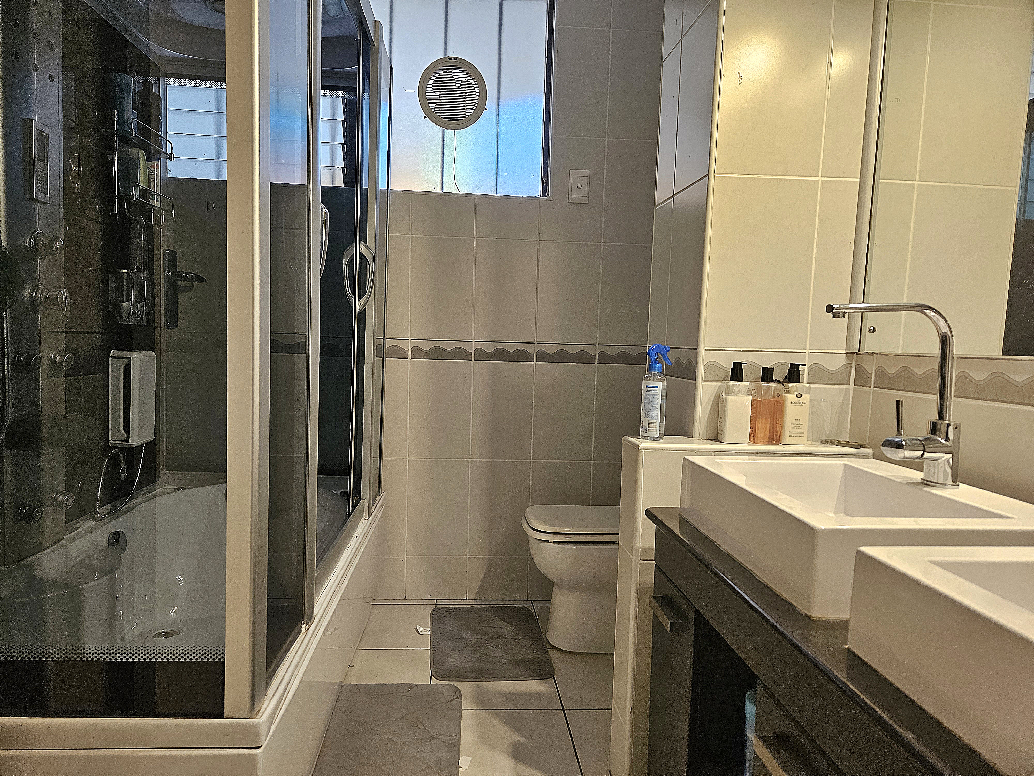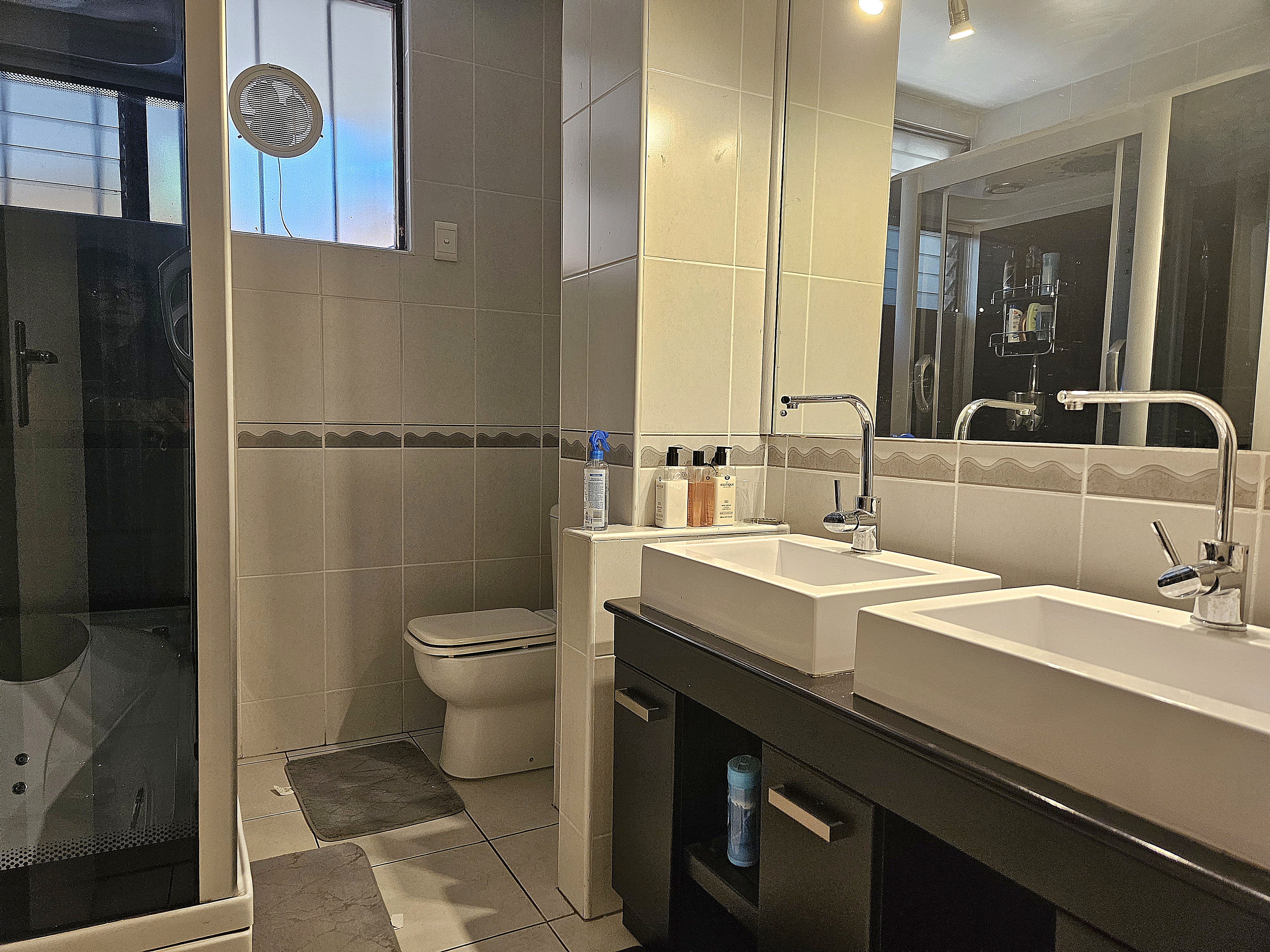 This exceptional residence features four generously sized bedrooms, each adorned with elegant laminated flooring and ample built-in cupboards. Three air-conditioners ensure year-round comfort throughout the home. The master suite is a private haven — air-conditioned and indulgently spacious, complete with a separate dressing room, a luxurious en-suite bathroom with a sunken bath, and stunning sea views to start and end your day in serenity.