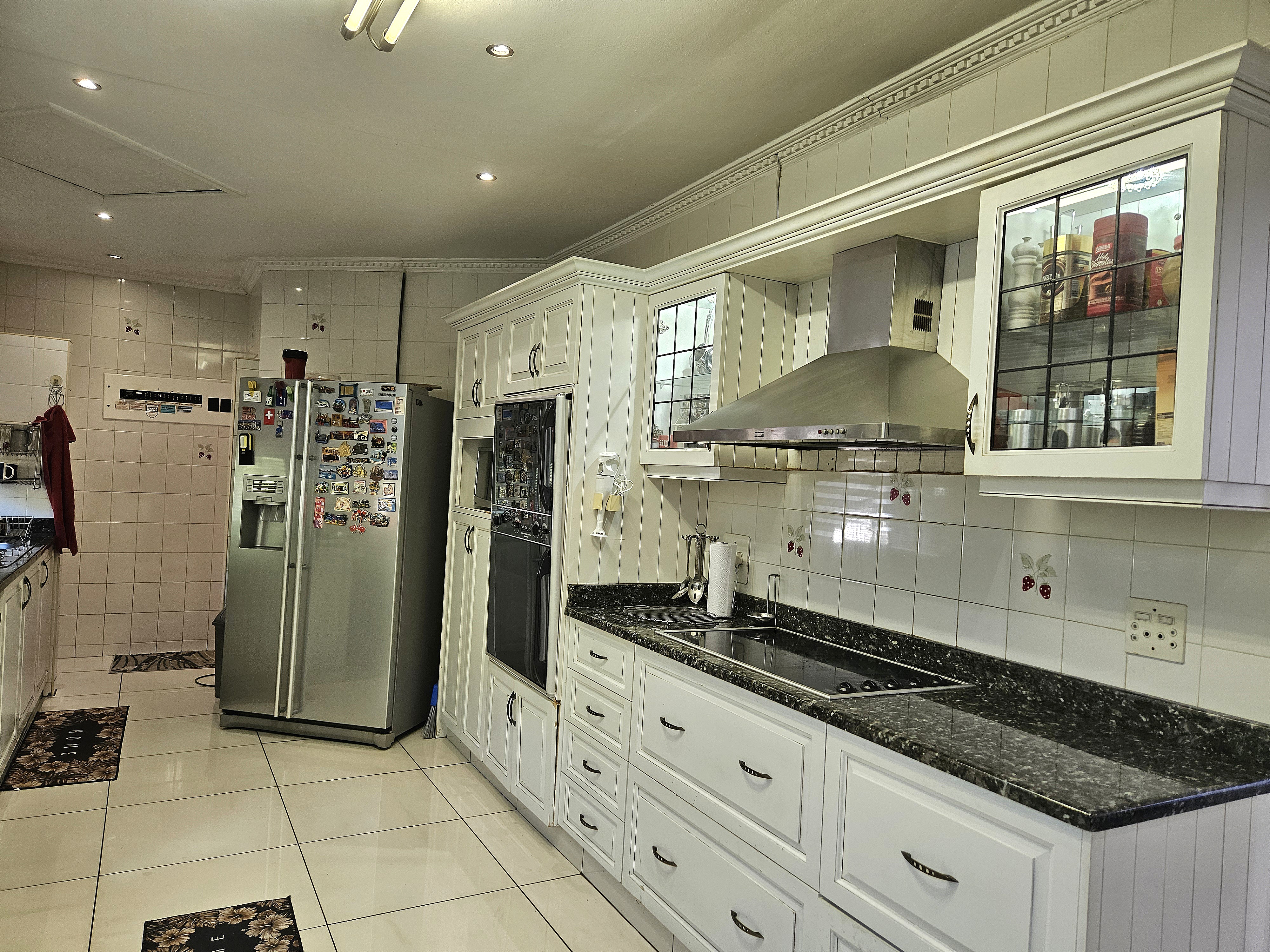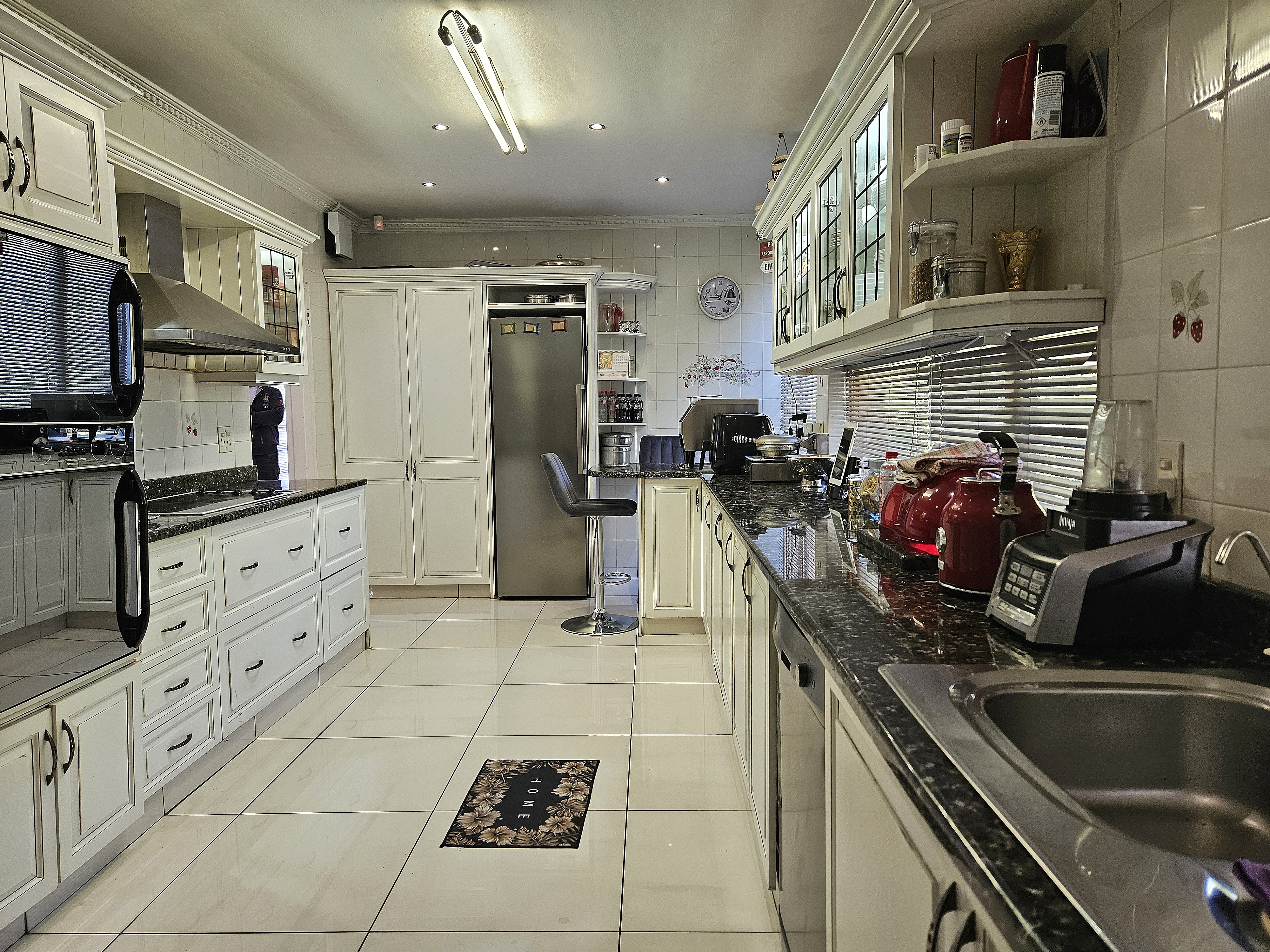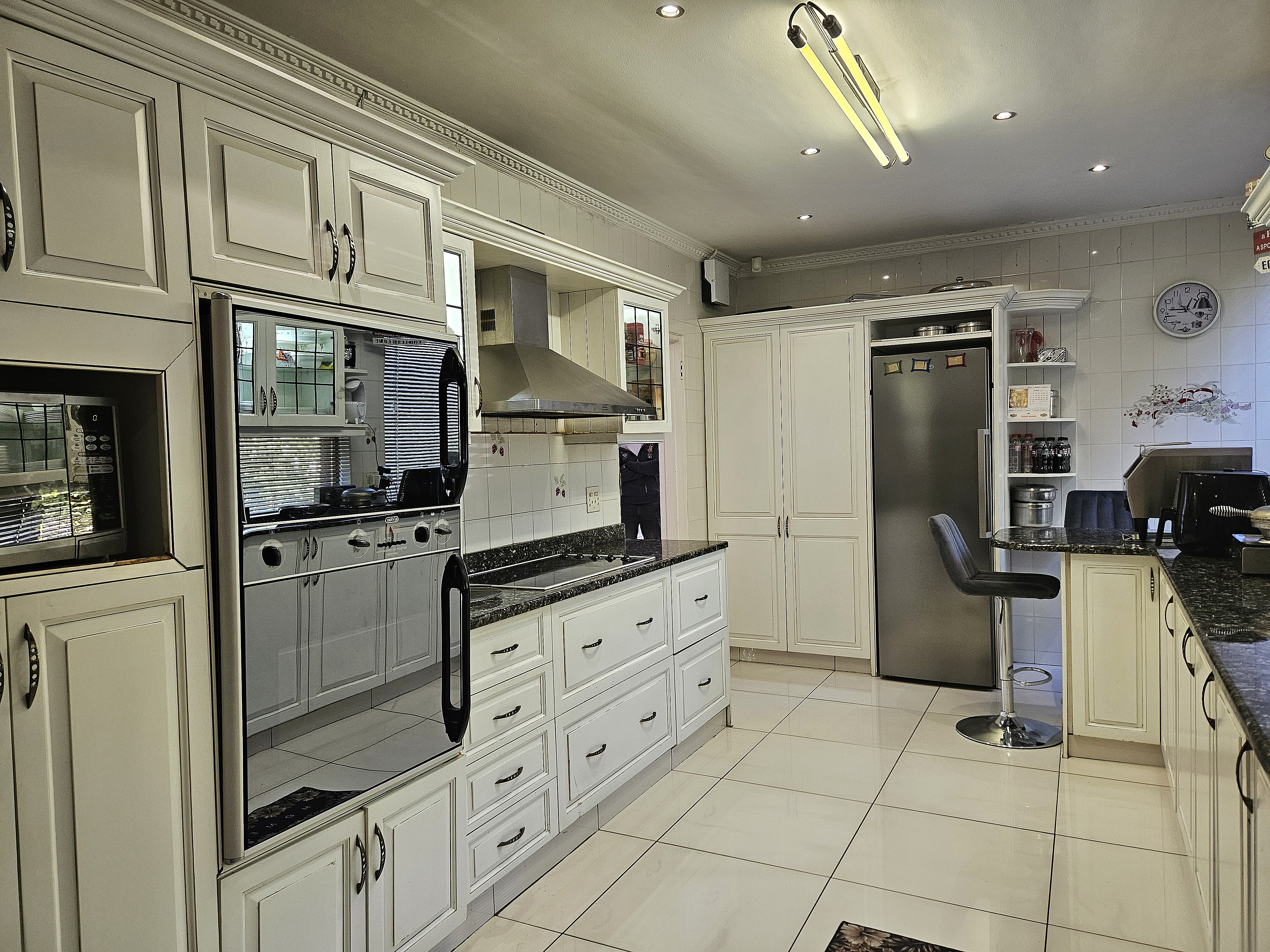 The gourmet kitchen is a culinary masterpiece, beautifully appointed with granite countertops, an eye-level oven, a sleek hob, and a double sink — the perfect blend of style and practicality.