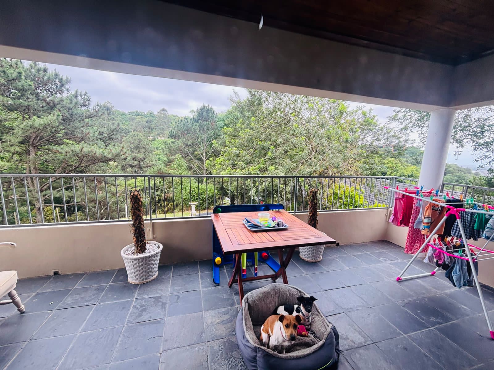 The spacious lounge opens onto a covered balcony where you can unwind with sweeping treetop views and overlook the level front garden – a safe playground for kids and pets. Tucked away from the living areas for added peace and quiet, a private passage leads to four generously sized bedrooms, all with built-in cupboards. Three full bathrooms (including a main en-suite) plus a guest toilet, make busy school mornings a breeze.