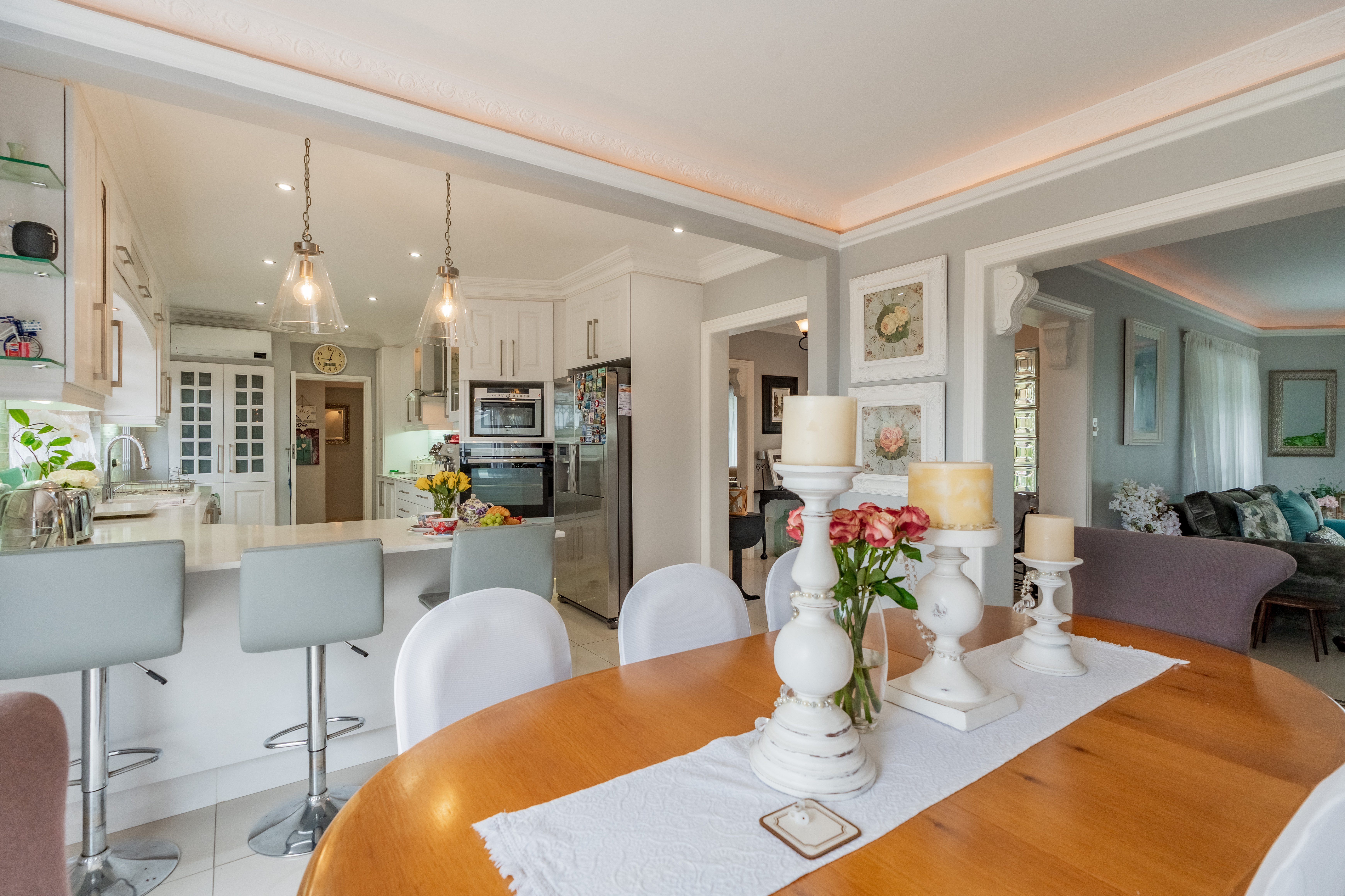 The home offers two generous living areas: a formal lounge for quieter moments and a relaxed large family/TV room that is open plan onto the dining room and kitchen All four bedrooms are well-proportioned and airy, with the main bedroom featuring a chic modern en-suite and plenty of built-in cupboards. A modern and neat full family bathroom services the remaining bedrooms.