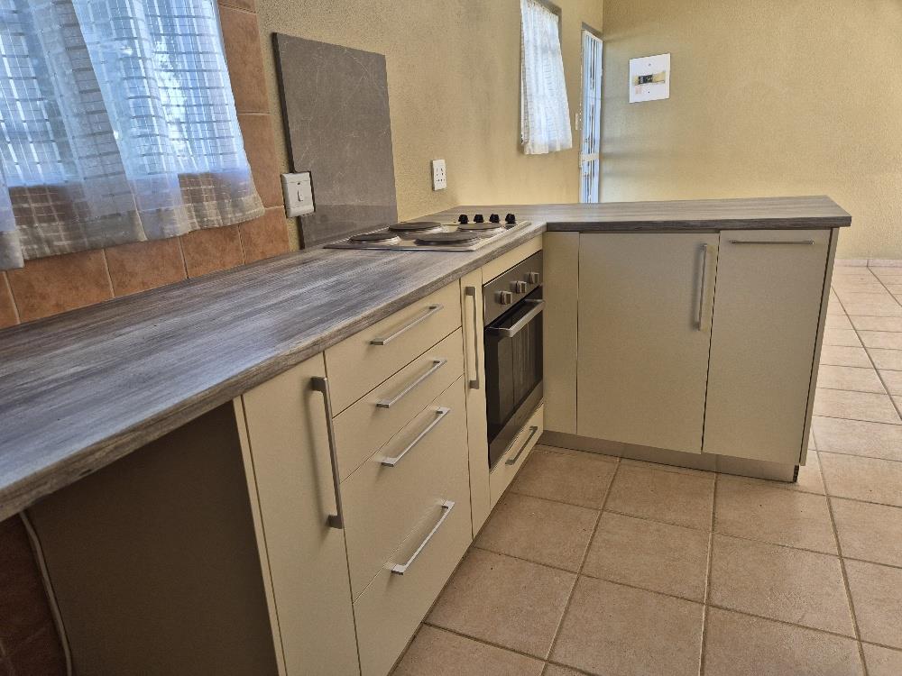 The well-appointed kitchen features built-in cupboards and ample space for a two-piece stove, washing machine, and fridge, making it a functional and practical hub for culinary enthusiasts.