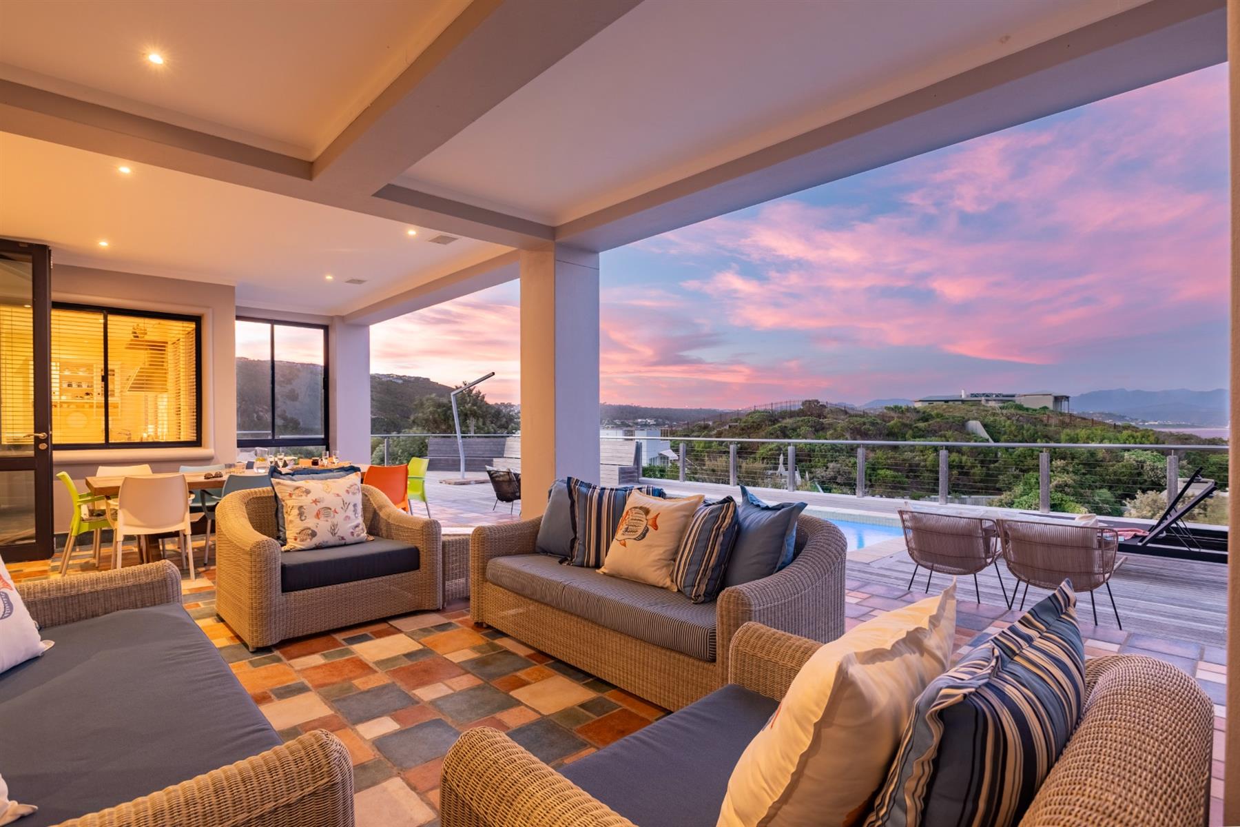 Set against the backdrop of the iconic Robberg Nature Reserve, the property enjoys breathtaking 180-degree views of the bay, the Whale Rock greenbelt, and the surrounding mountains.