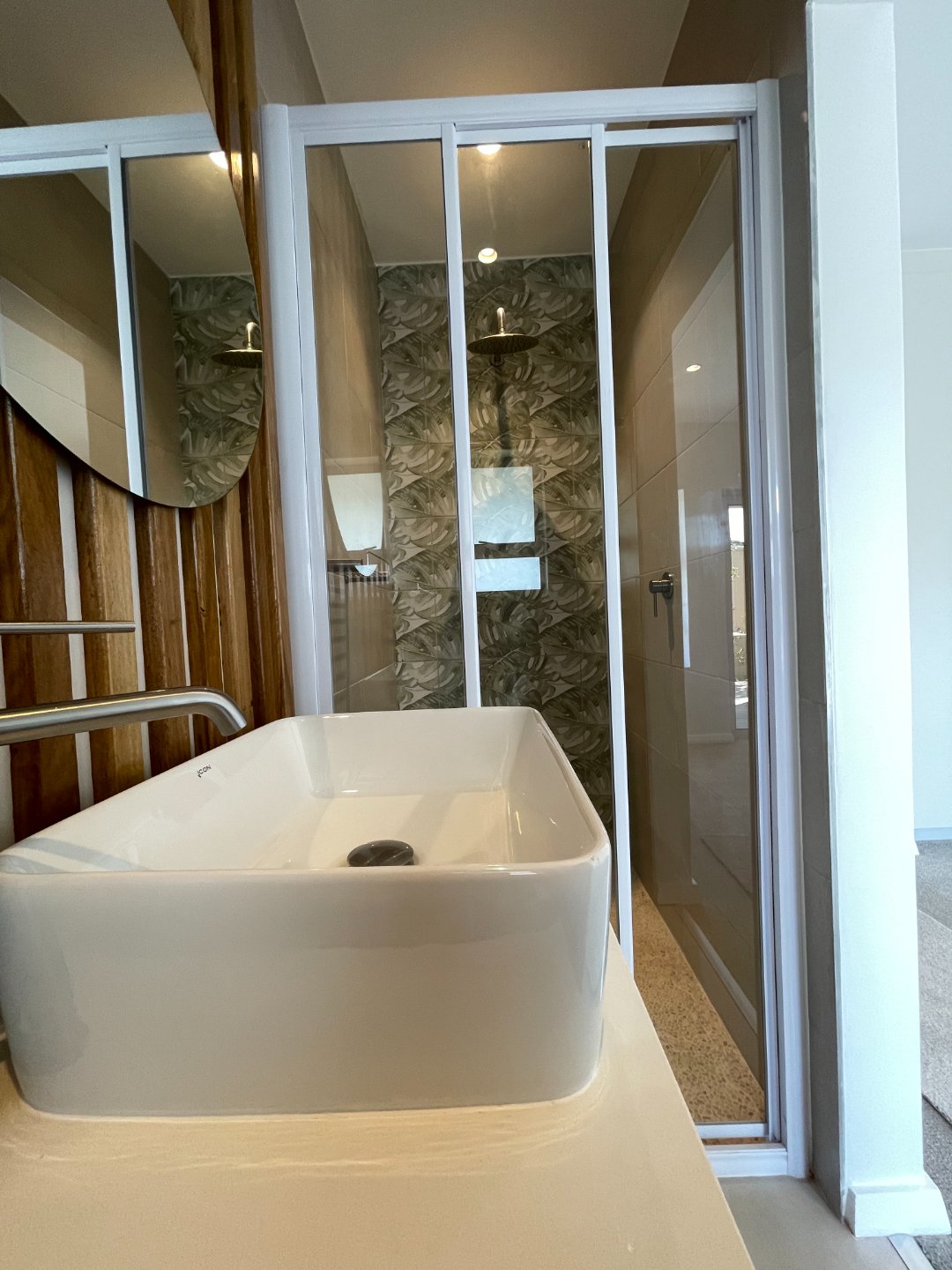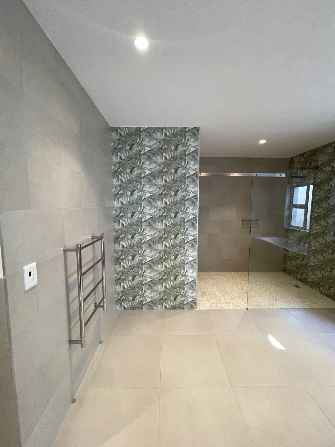 Accommodation includes four spacious, carpeted bedrooms—all en-suite. The primary suite is a private retreat featuring a walk-in dressing room and a luxurious full bathroom. Three bedrooms open directly onto the pool deck, offering an effortless indoor-outdoor connection, while the fourth bedroom—ideal as a guest suite or home office—is set apart for additional privacy.