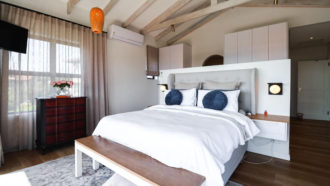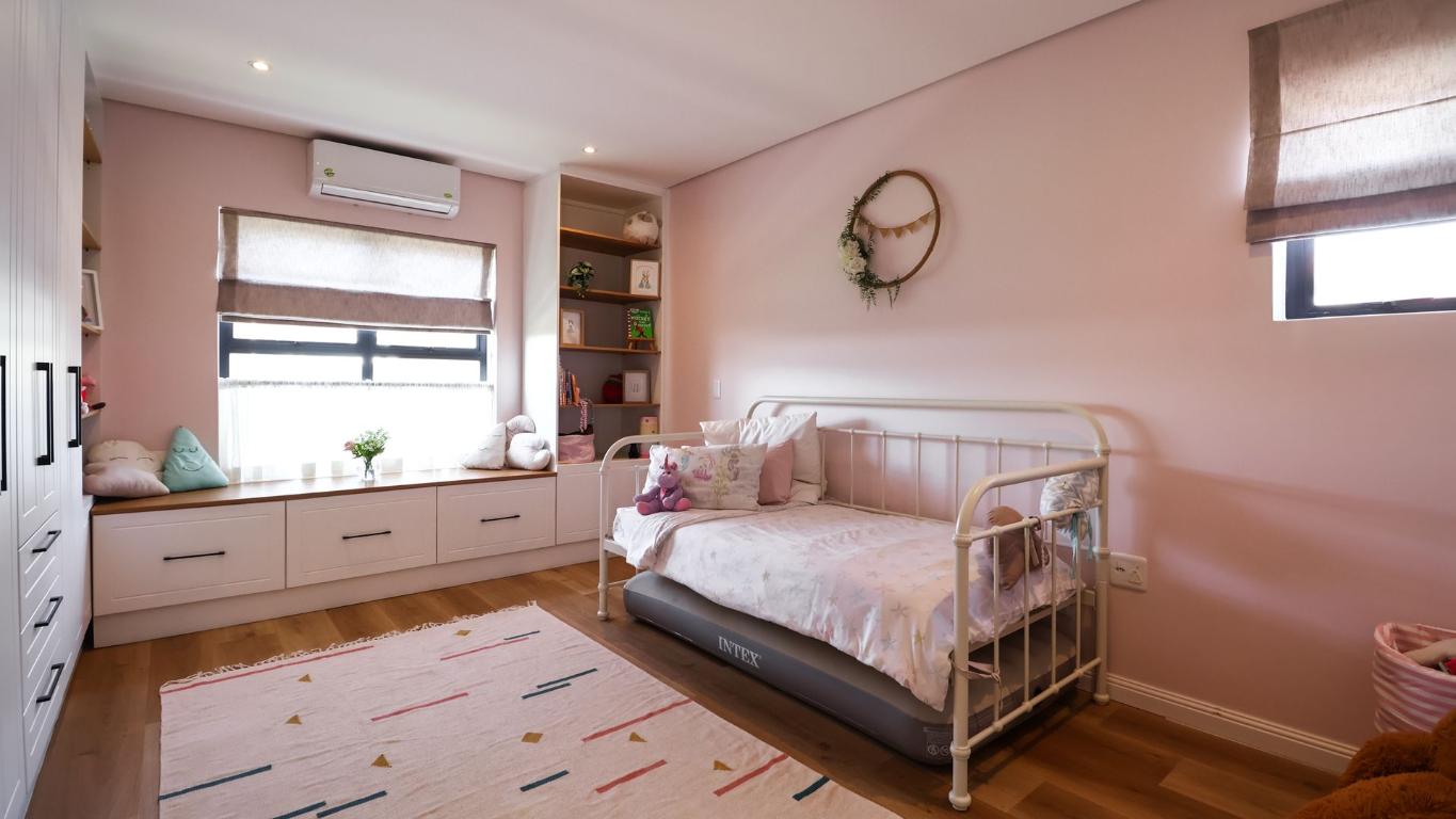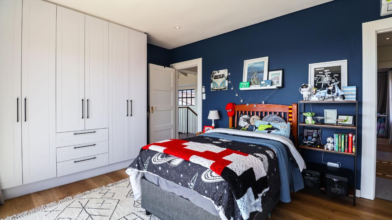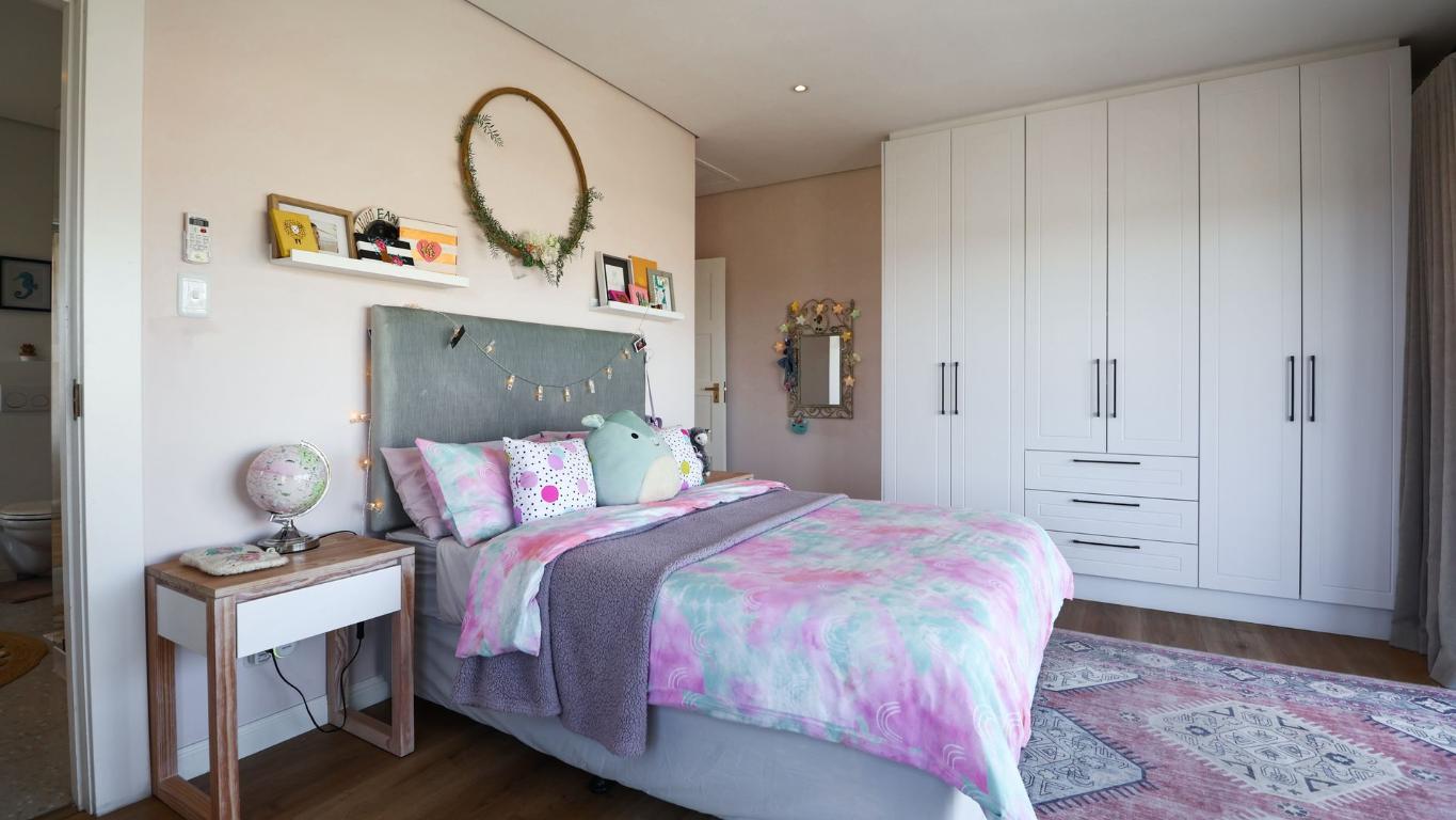 With six bedrooms, including a separate one-bedroom flatlet with its own lounge and kitchen, this home accommodates family and guests with ease. Upstairs, four spacious bedrooms provide privacy and tranquility. Two en-suite bedrooms feature sleek glass showers and muted tile tones, while two additional bedrooms share a full bath—ideal for children, with the flexibility to personalize the aesthetic.