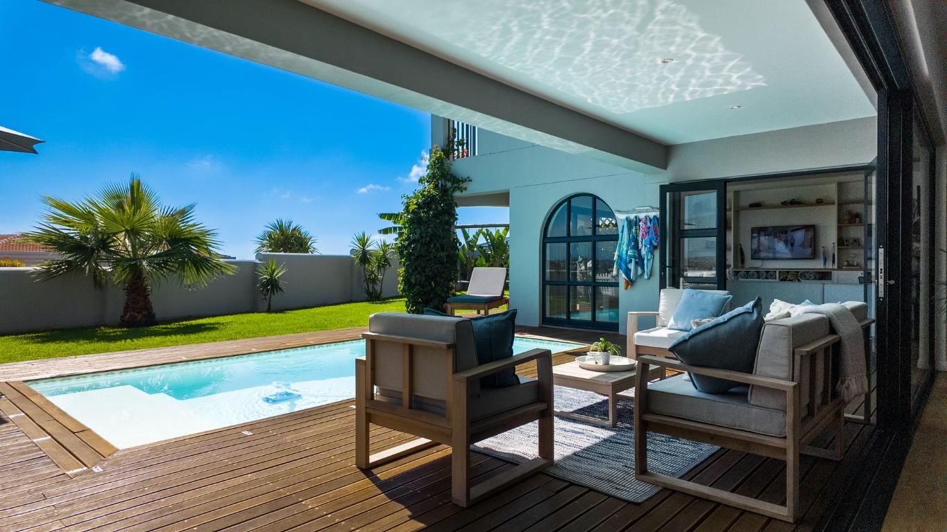 Indoors and outdoors merge seamlessly—move with ease from the sun deck to the manicured lawn, from the airy lounge to the sparkling salt-heated pool. The playroom opens onto a lush garden, providing an ideal space for children or relaxation. A covered balcony upstairs offers the perfect spot for a morning coffee or an evening nightcap under the stars.