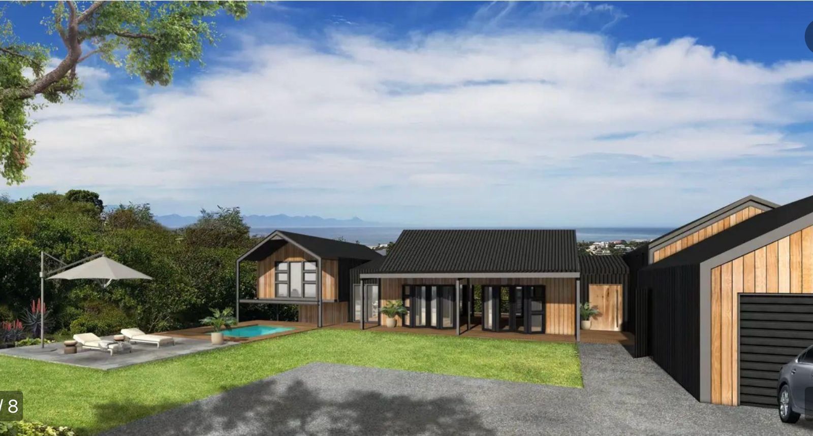 Perched on a 1,225m2 stand, the approved plans make full use of the slope to ensure uninterrupted sea views — while also cleverly allowing for future expansion such as a self-contained cottage below the main home.