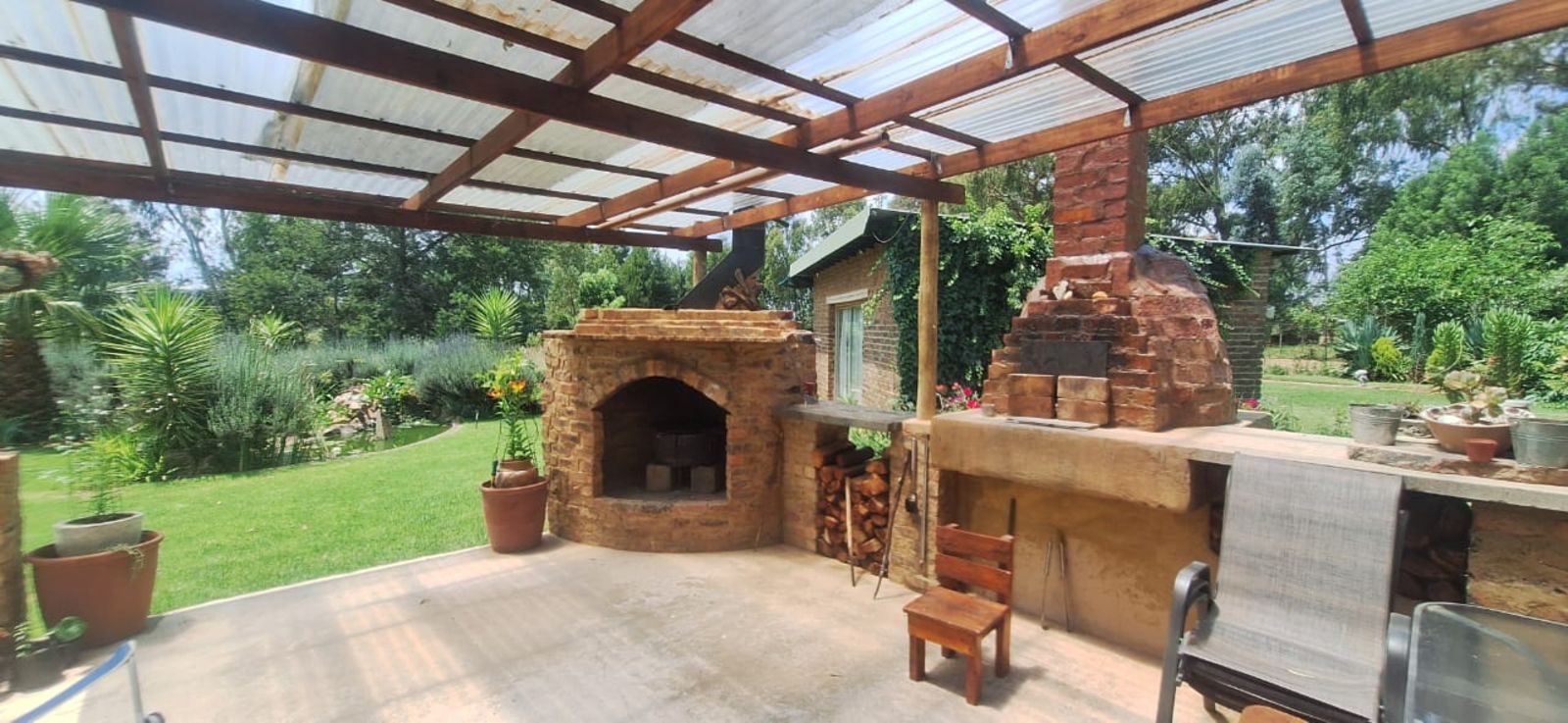 For relaxed outdoor living and entertaining, enjoy an outside kitchen with a pizza oven and a well-designed braai area, perfect for hosting family and friends in a tranquil farm setting.