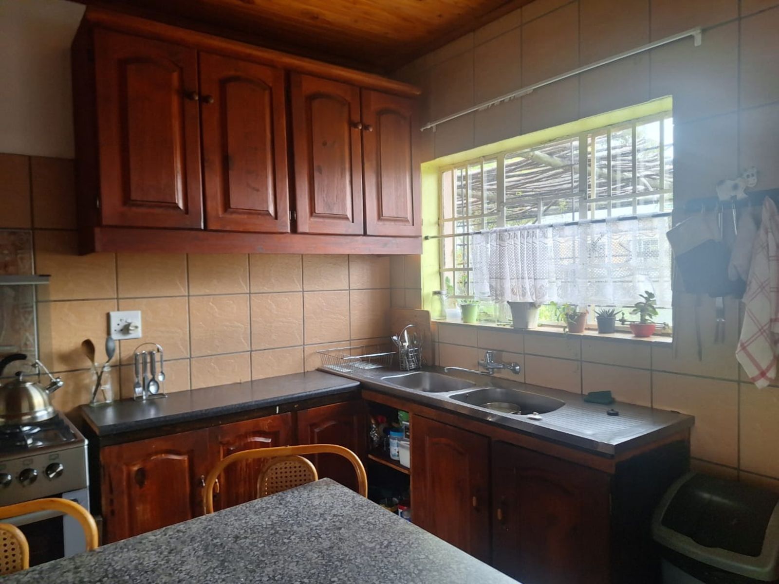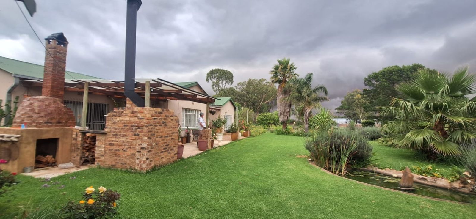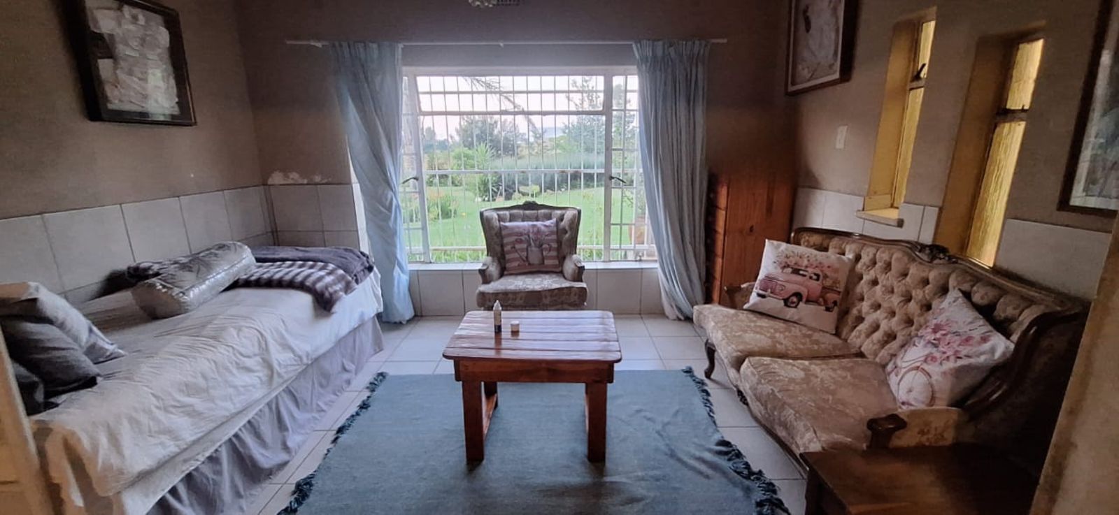 The main house is spacious, warm, and extremely well cared for, featuring 41⁄2 bedrooms, all tiled and fitted with built-in cupboards. The home includes one en-suite bathroom and an additional full family bathroom. The expansive open-plan lounge and dining area is the heart of the home, boasting a powerful built-in fireplace that efficiently heats the entire house during winter, creating a cosy and comfortable living environment. A separate office makes working from home practical and convenient, while the neat, functional kitchen completes this inviting living space.