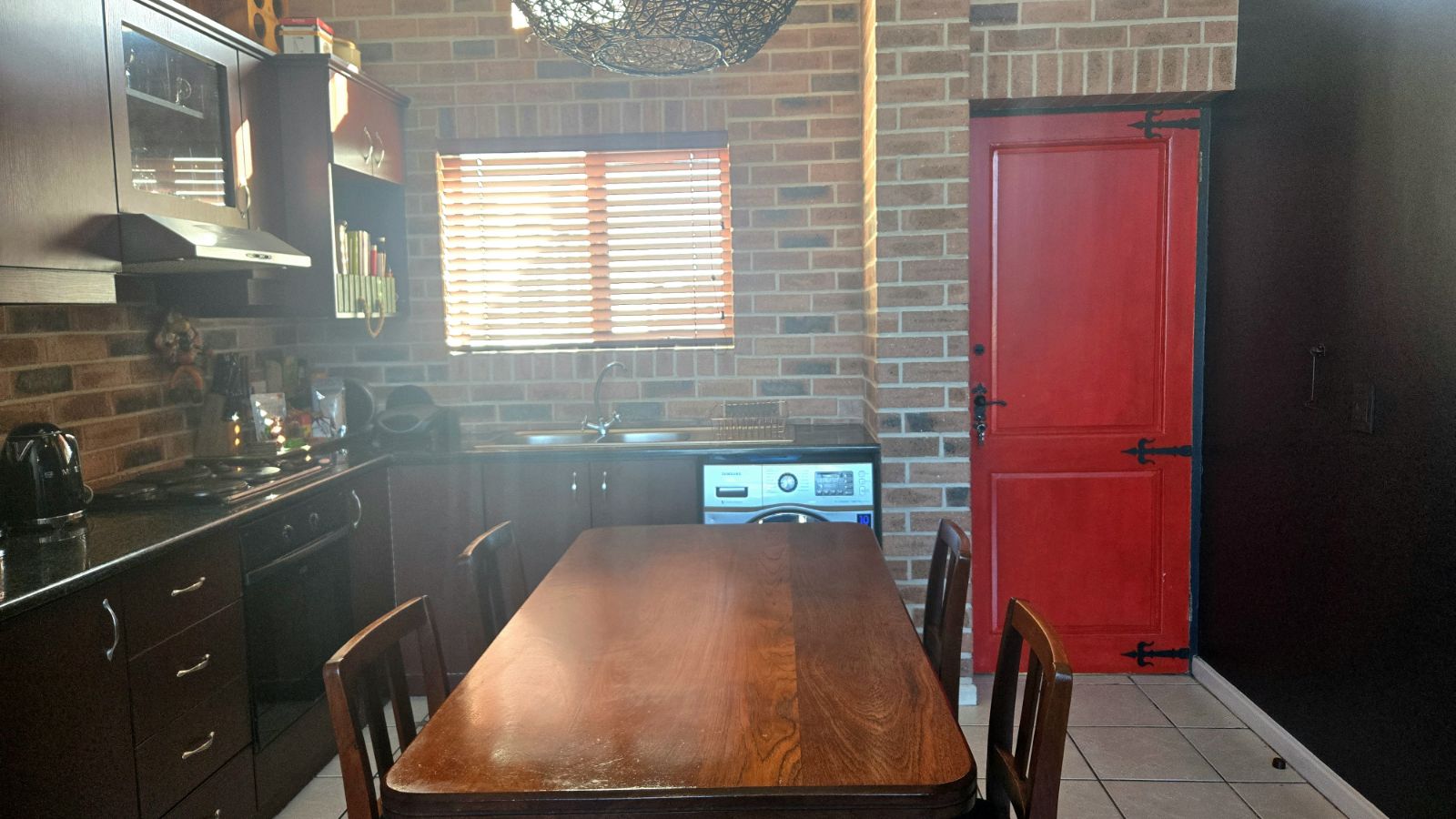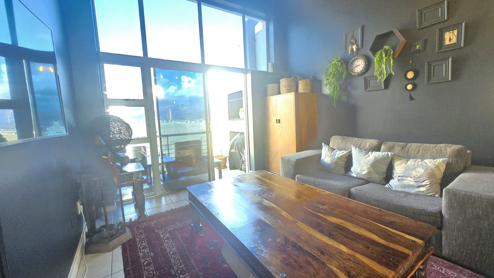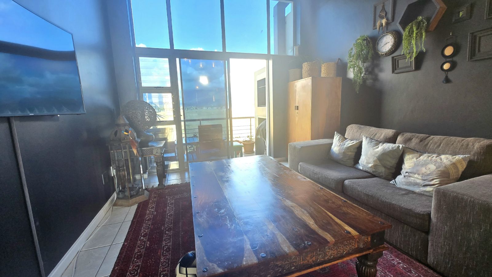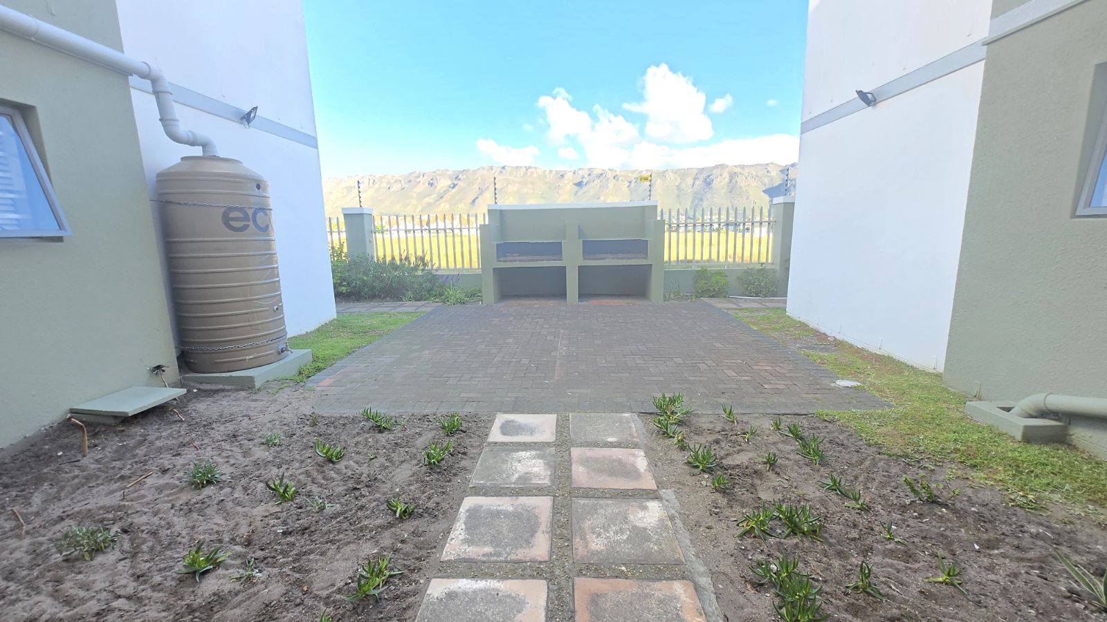 The open plan kitchen and living area create a bright, welcoming space that flows seamlessly onto a private balcony with a built-in braai, perfect for relaxing while enjoying the mountain views.
