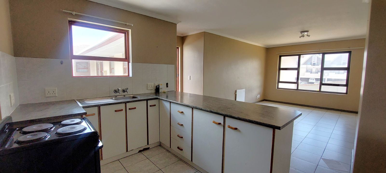 Discover this spacious two-bedroom, first-floor apartment located in the secure Disa Gardens complex. Inside, the tiled living areas flow into a generous kitchen complete with a large breakfast nook. Both bedrooms feature built-in cupboards, serviced by a full family bathroom. For your leisure and convenience, the property includes a single garage and access to a communal swimming pool, all protected within a secure estate offering 24-hour security and an electric fence.