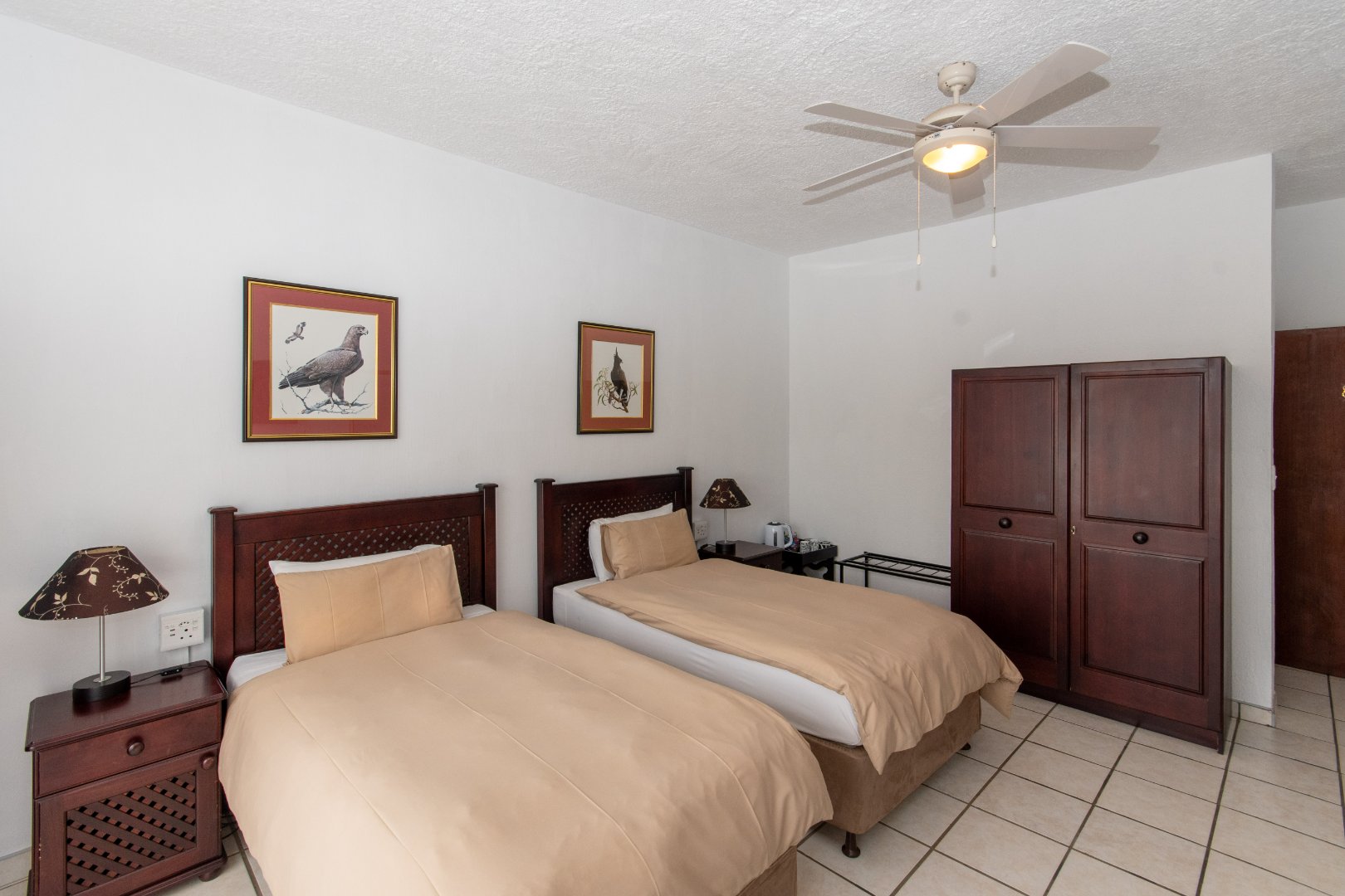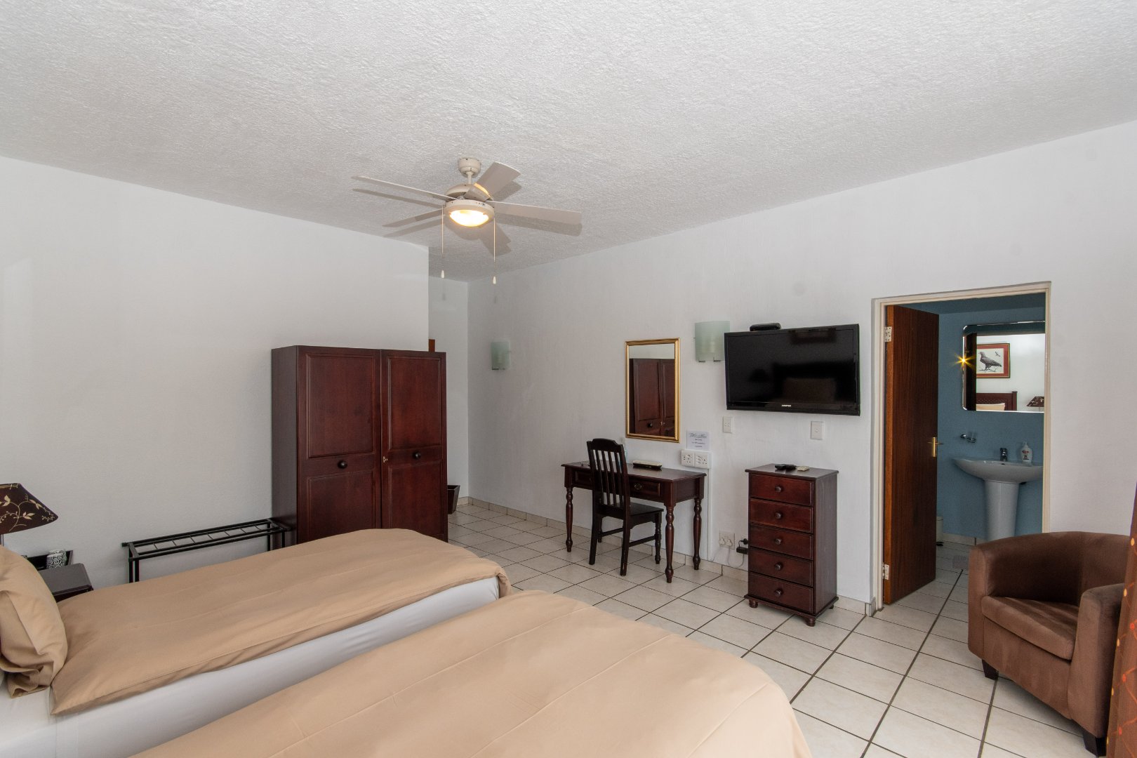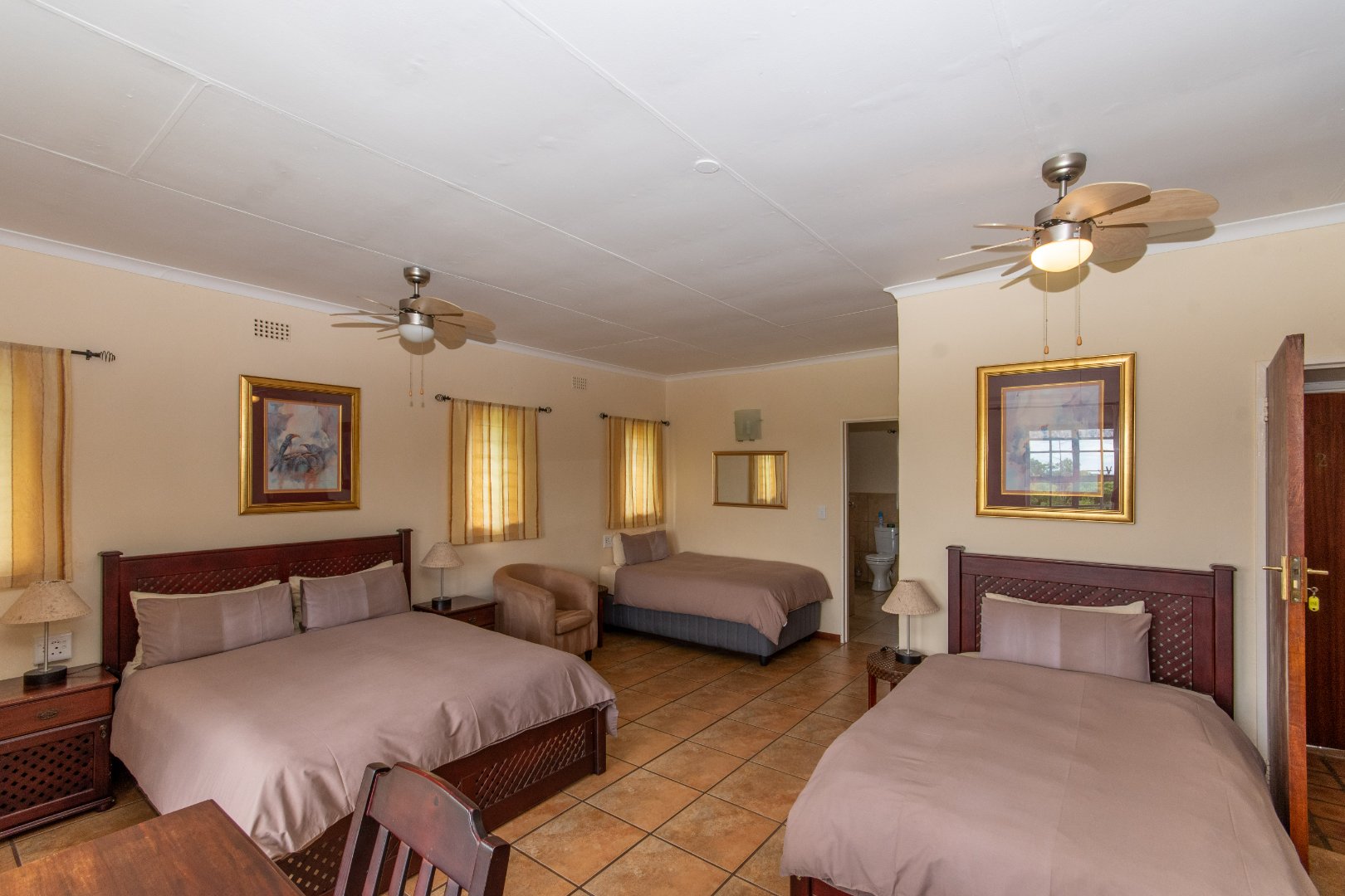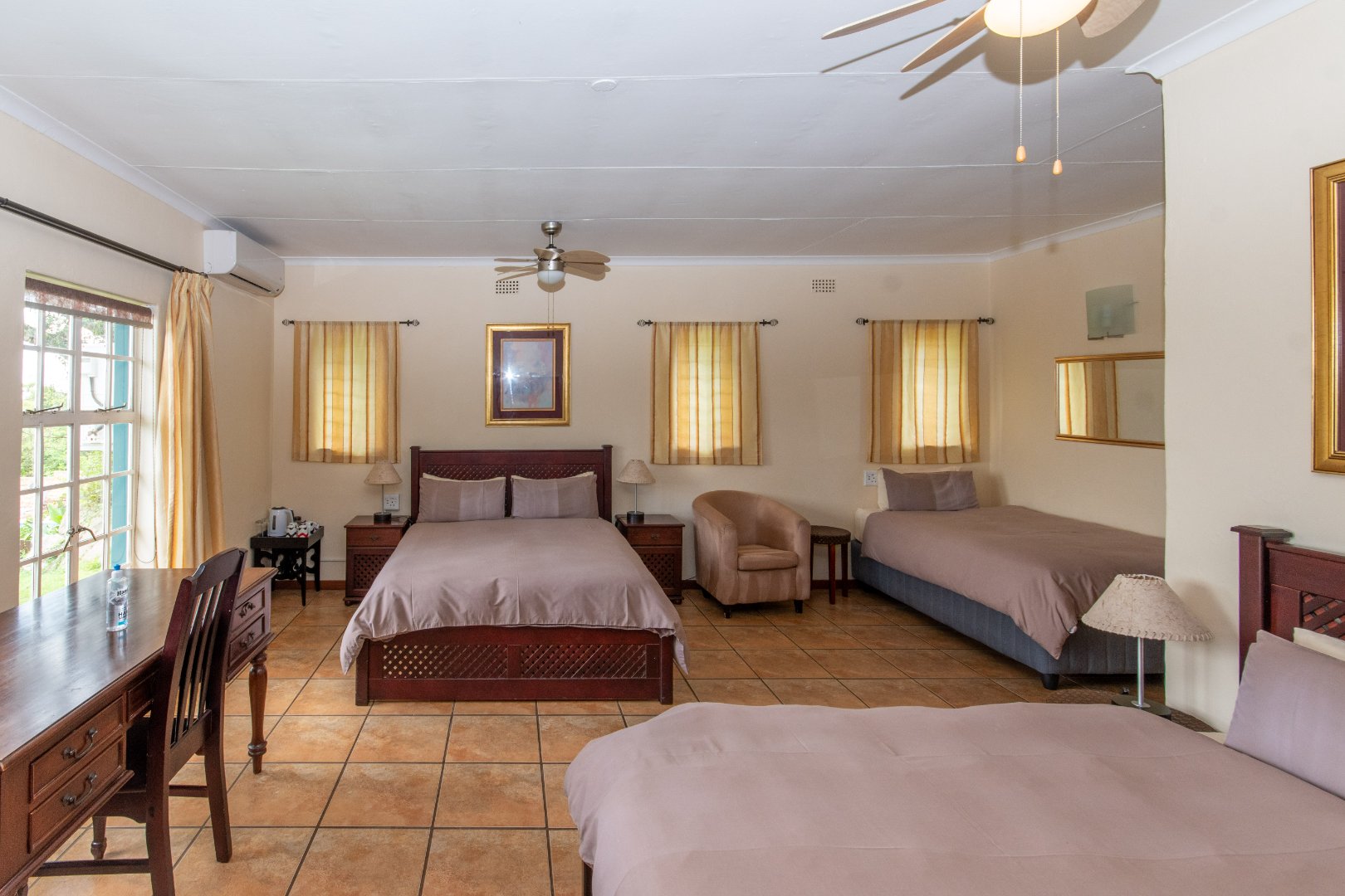 All rooms feature air conditioning, overhead fans, and tiled or laminated floors.