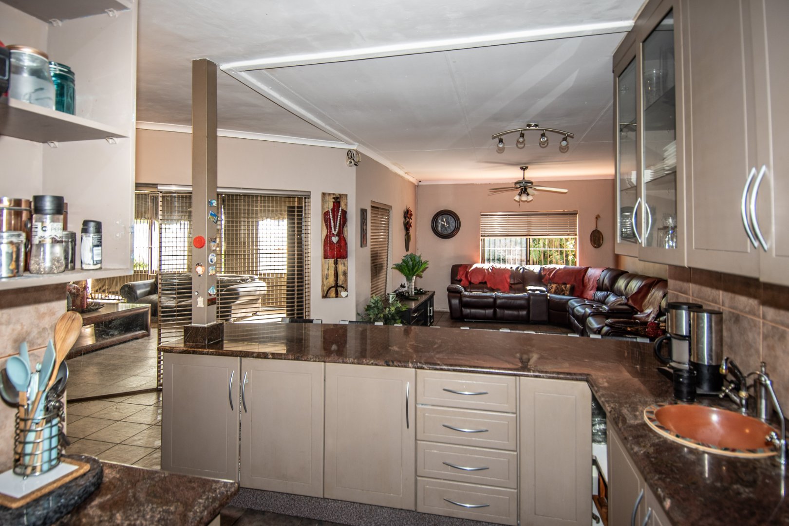 A stylish kitchen with separate scullery and pantry