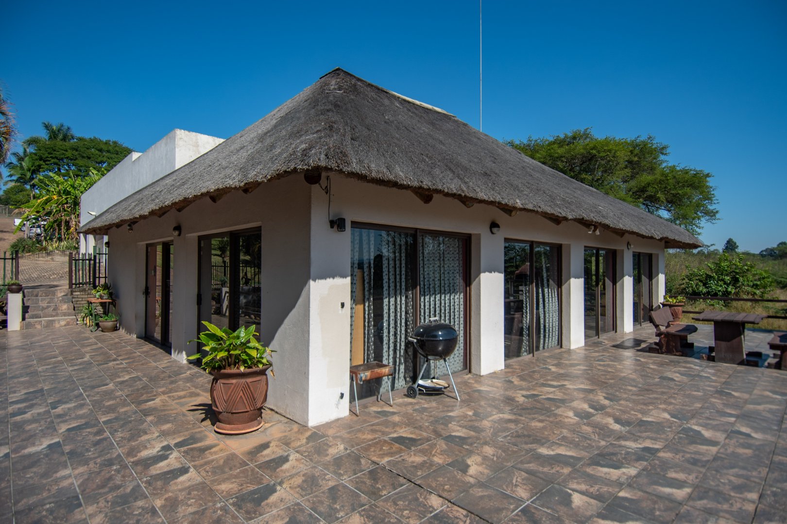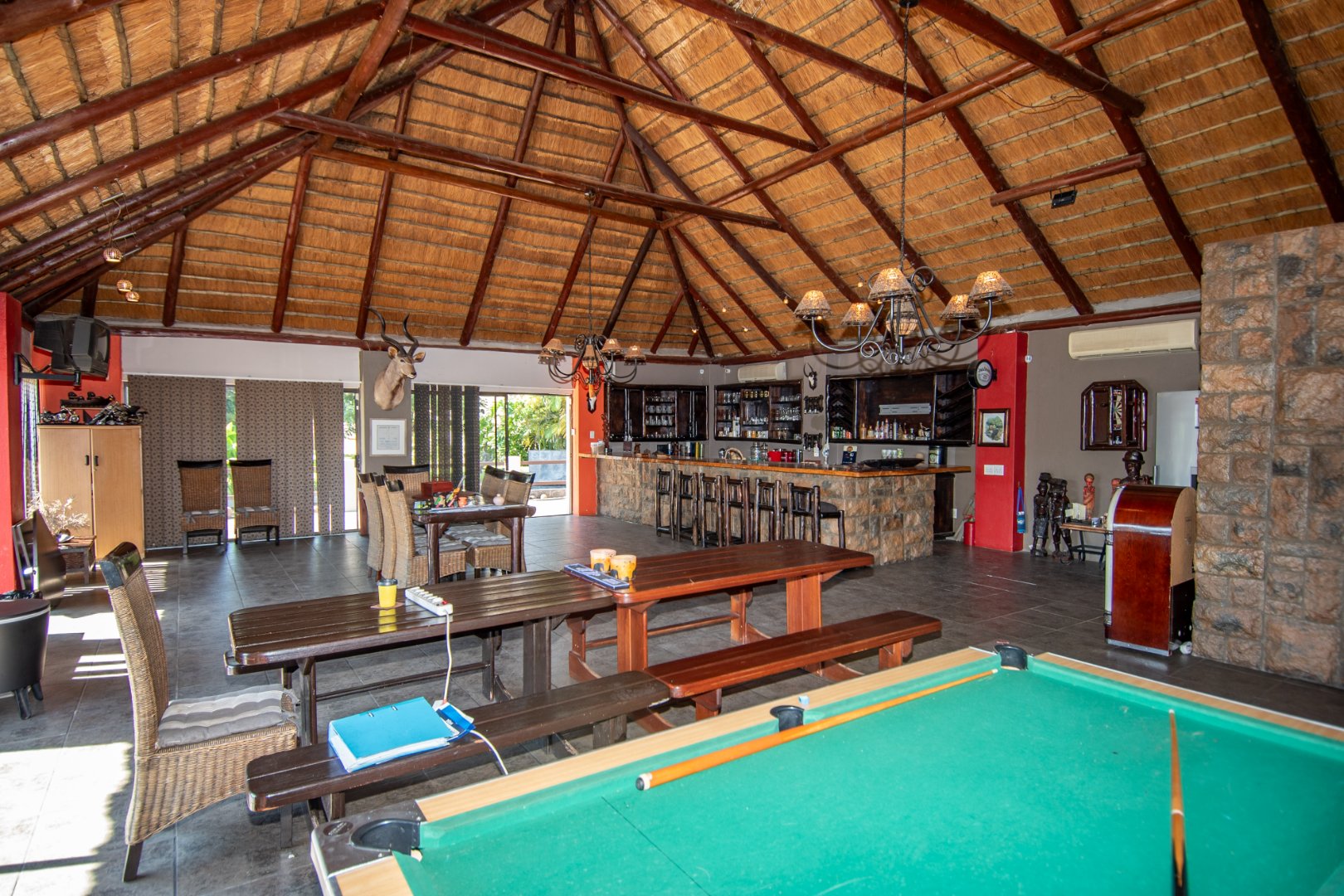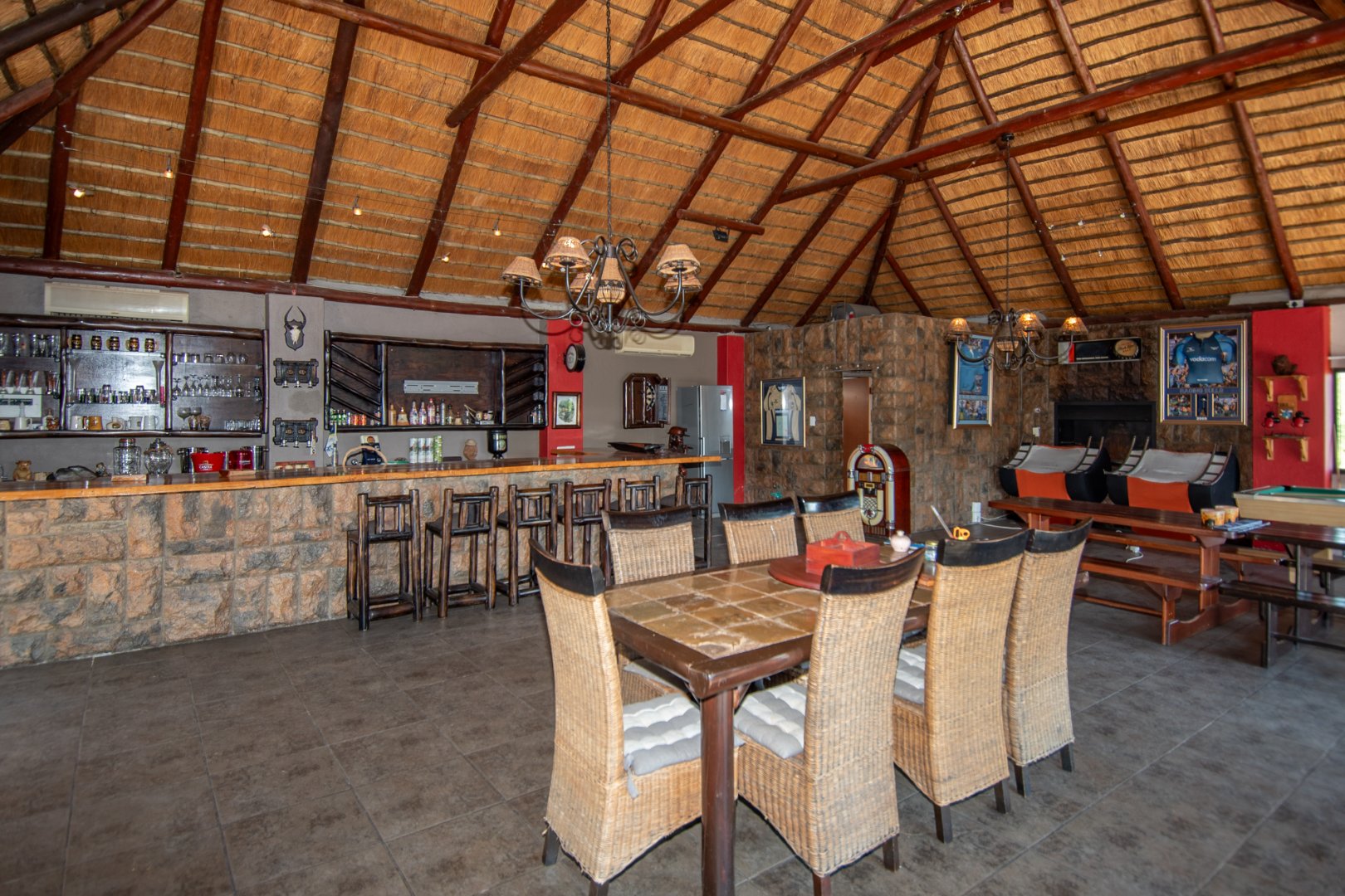 An impressive 144sqm entertainment area with a bar, indoor braai, and views over the splash pool—ideal for family time or hosting gatherings