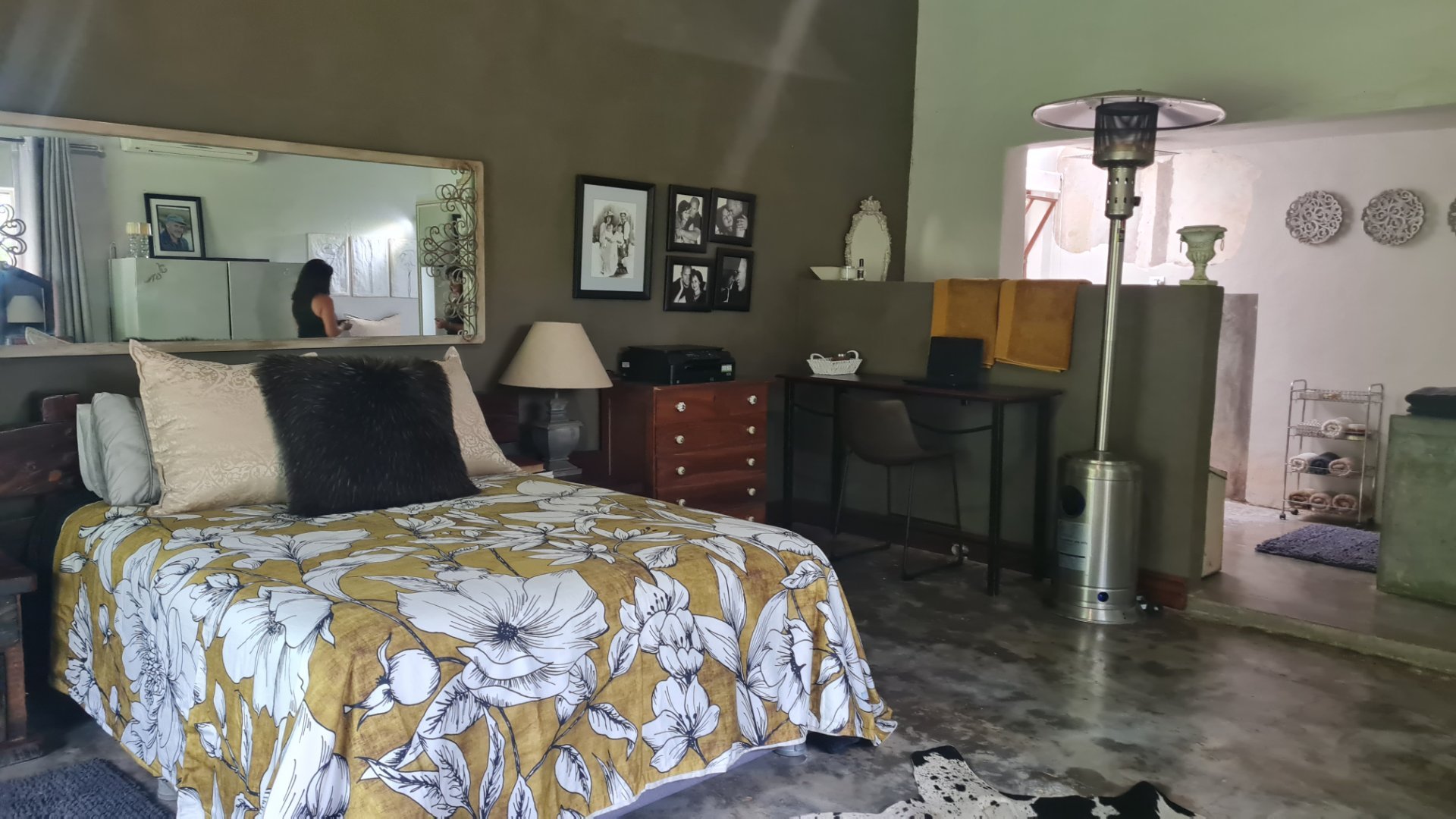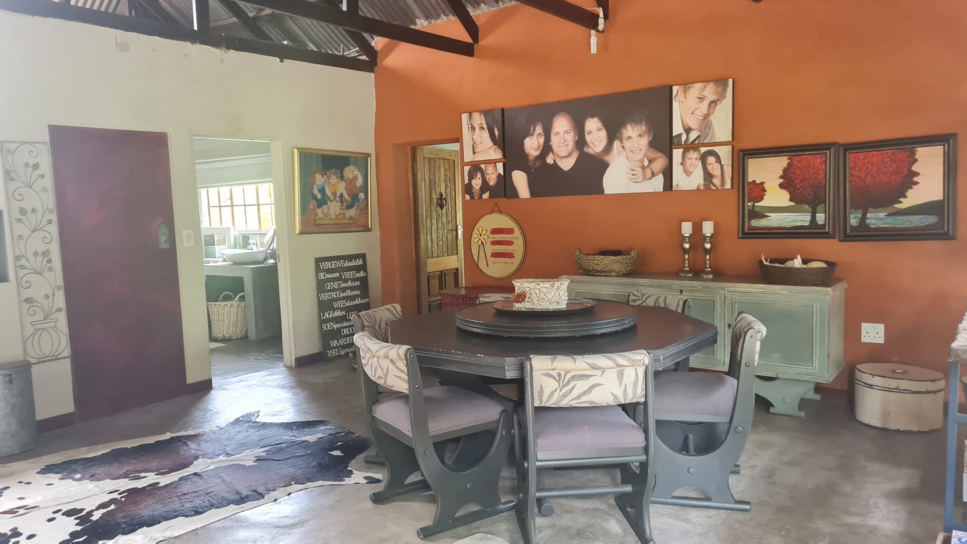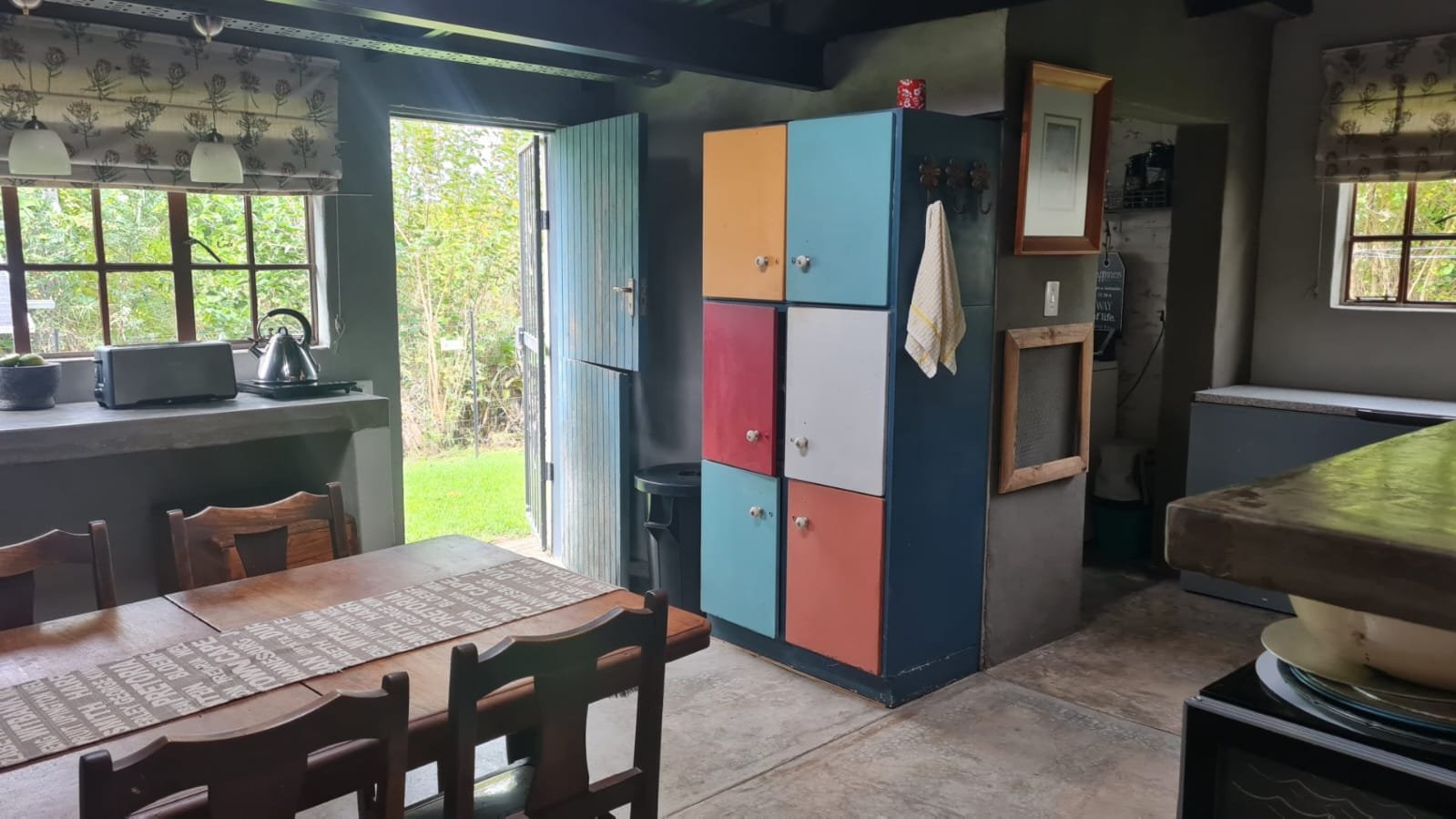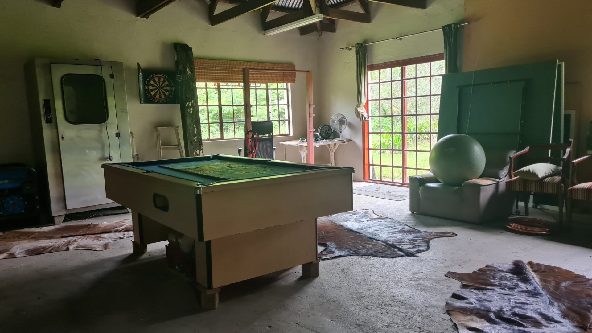 The Main House has 2 bedrooms, 2 bathroom and space for a 3rd (at tge moment utilized as a snooker room and office).
