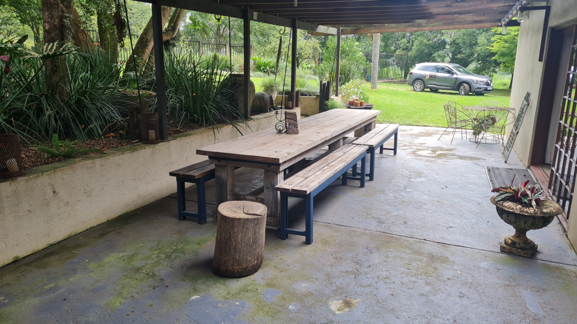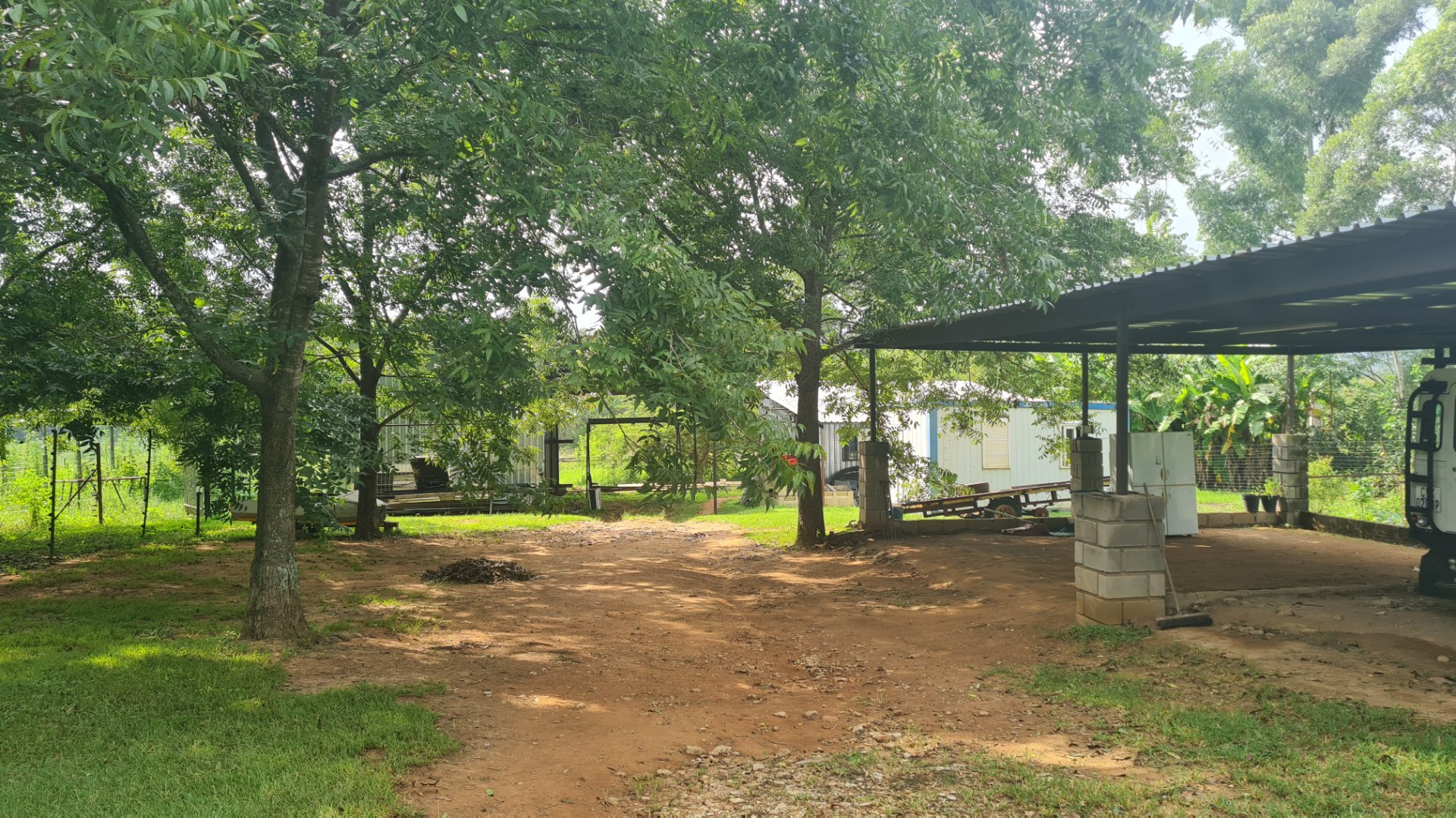 Carport for 6 cars. A workshop half open half locked.