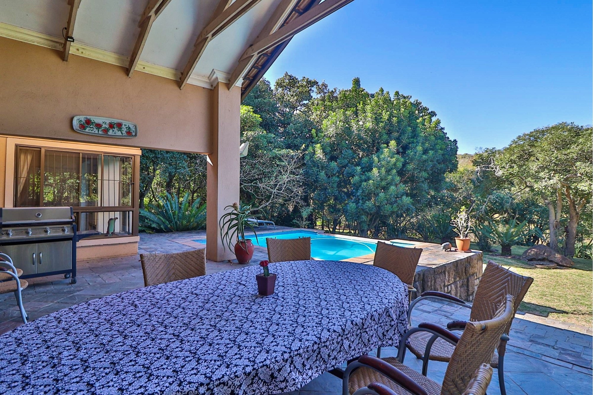 Other notable features include a water tank, ideal for sustainable living, and dams scattered throughout the property, enhancing its scenic charm. This brick-built marvel, first owned, exudes a contemporary essence. Pets are warmly welcomed, making it a perfect place for your entire family. Located at 4 Vergenoeg Street, White River, this property is a testament to luxurious country living. Schedule a viewing today and experience it for yourself!