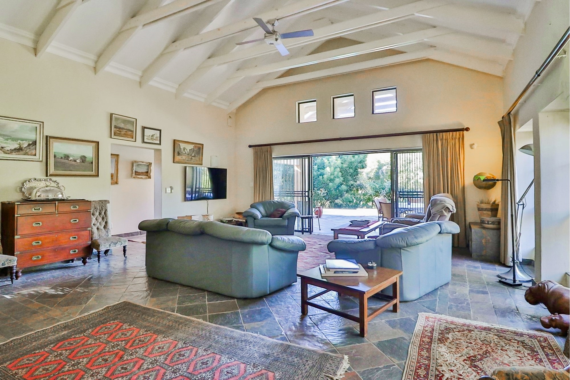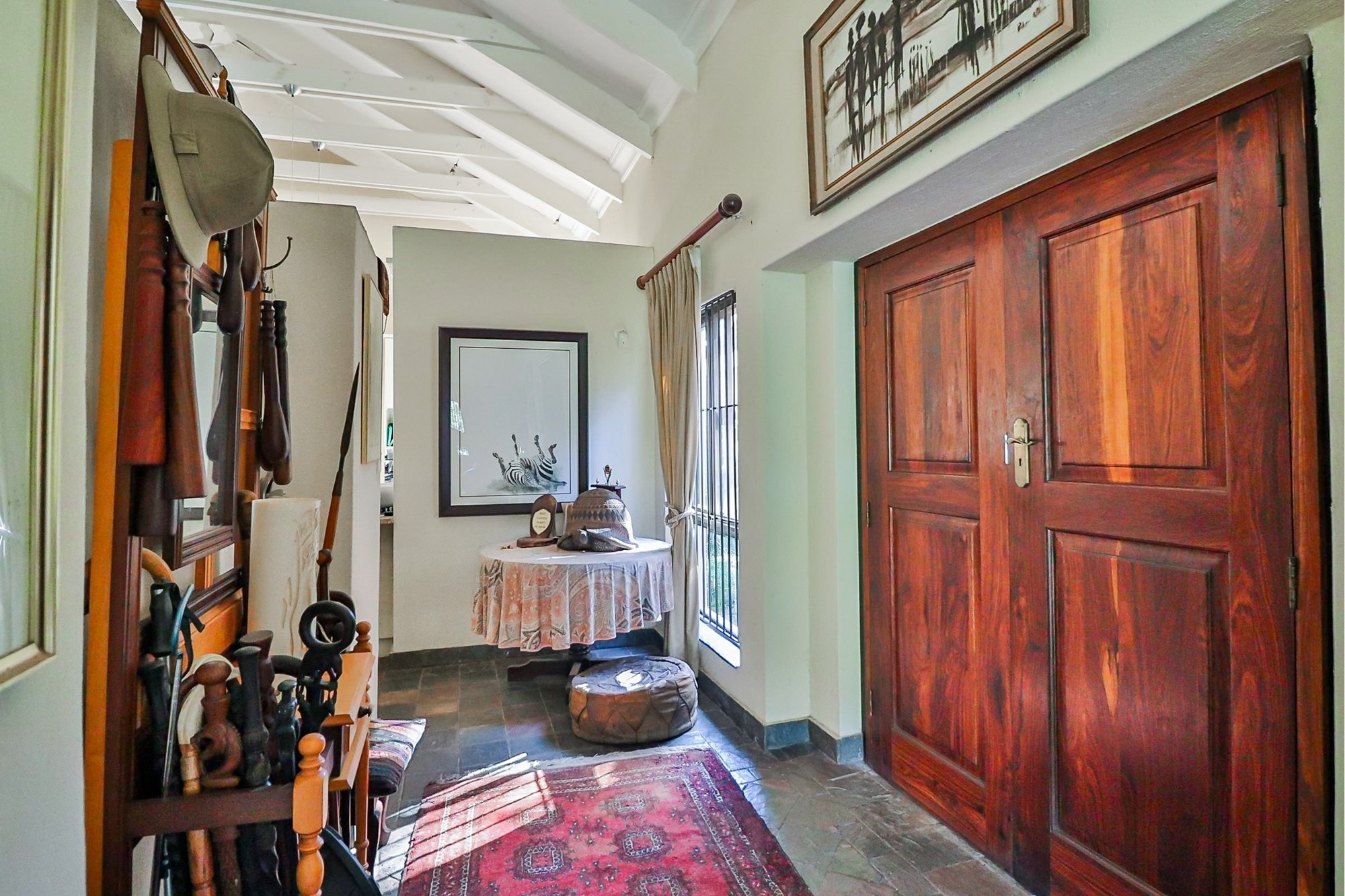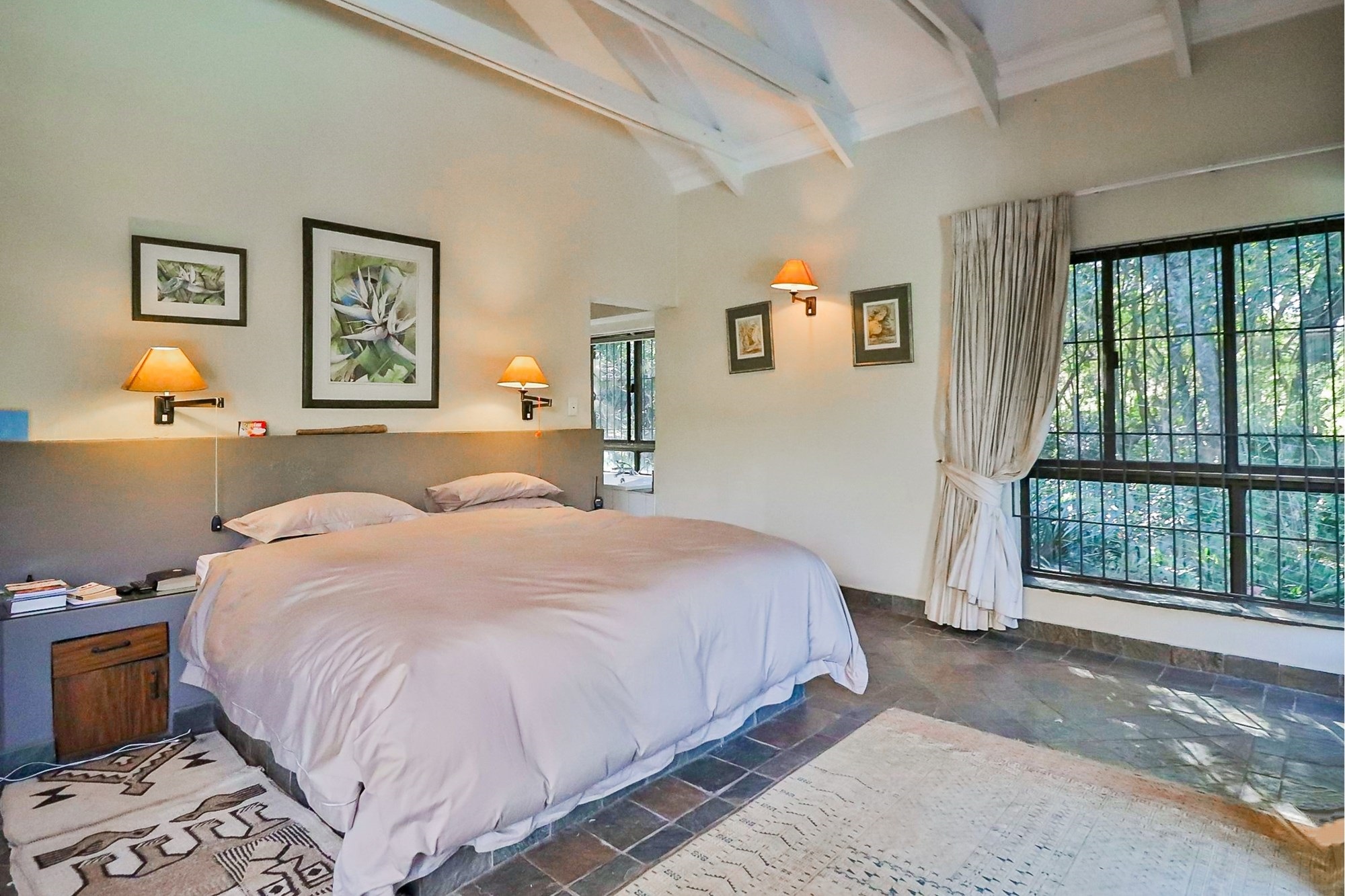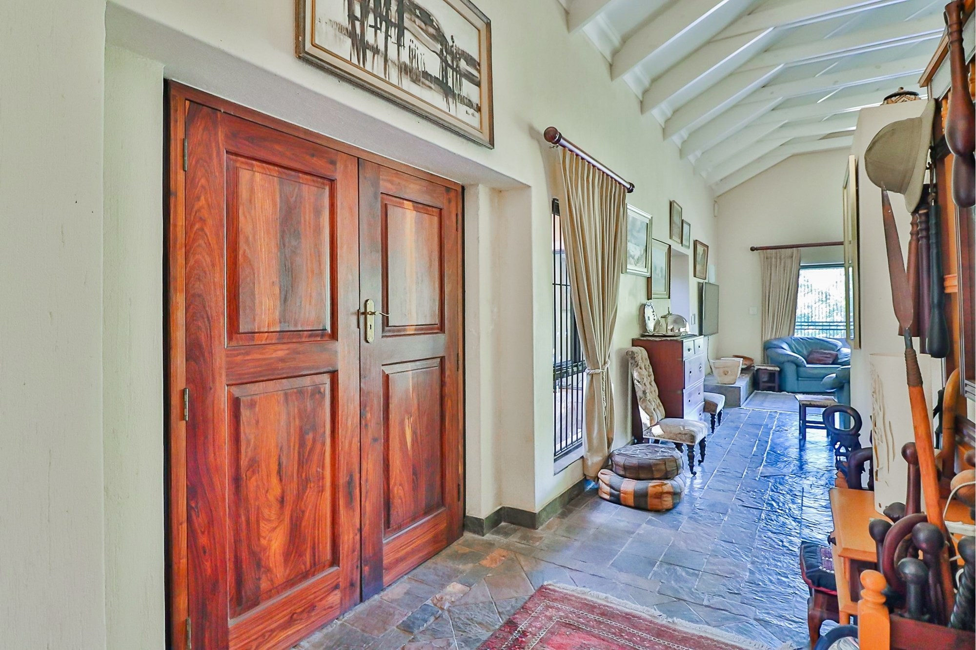 The outdoors invite you with an exquisite garden, ideal for family gatherings or a peaceful morning retreat. Enjoy a refreshing swim in the swimming pool or simply soak up the sun on the expansive veranda. With mountain views and open spaces, the farm presents a perfect harmony with nature. Amenities such as a garage with an automatic door add convenience, while an alarm security system provides peace of mind.