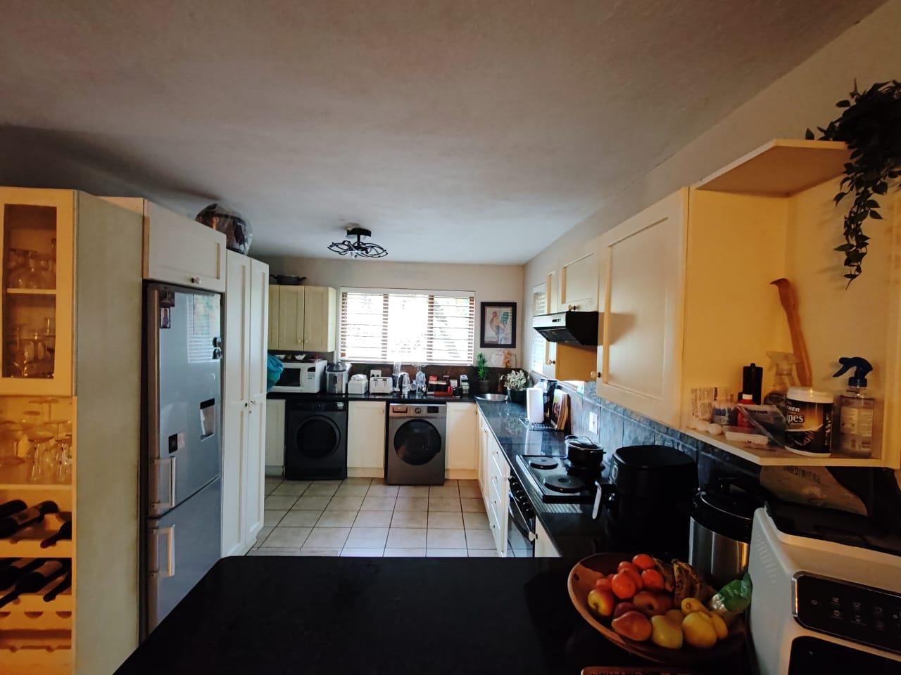 The kitchen is spacious with plenty of space for appliances.