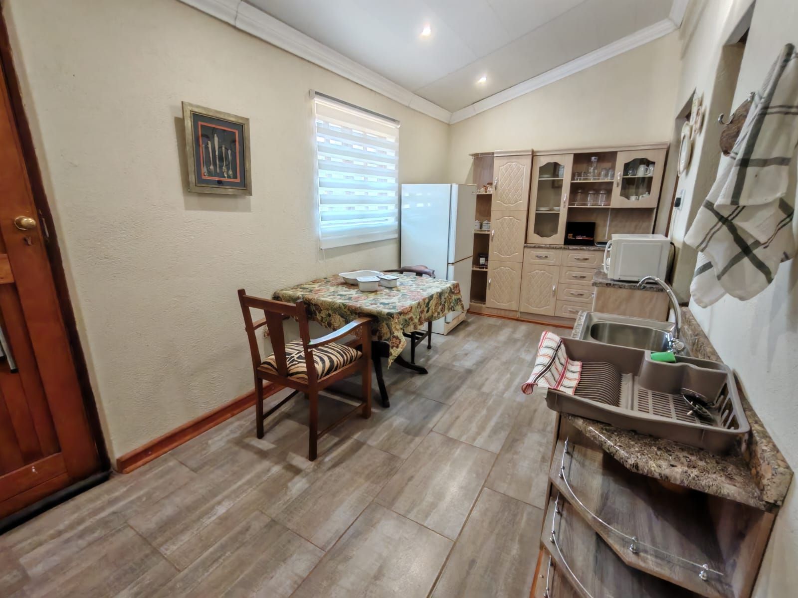 The guesthouse features 12 spacious units, a fully equipped kitchen with pantry, laundry facilities, office space, a guest toilet, and a conference room, making it ideal for business retreats or private functions. Step outside to enjoy the beautiful deck and a garden gazebo with a tiled roof, as well as a charming thatch-roof lapa connected directly to the guesthouse – perfect for sundowners or a quiet morning tea.