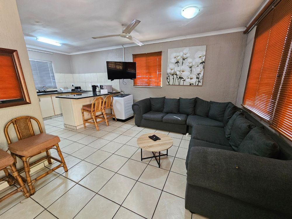 1 Bedroom, 1 Bathroom fully Furnished. Includes. Water prepaid electricity. Communal swimming pool. Built in braai lovely patio. Single carport. No pets. 2 people maximum