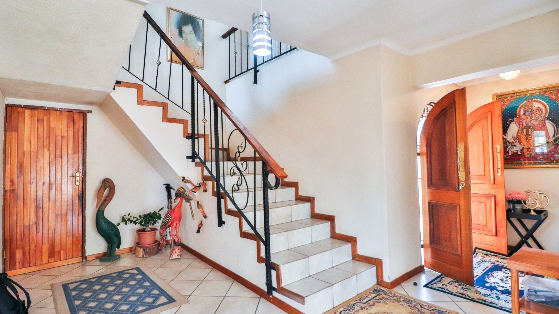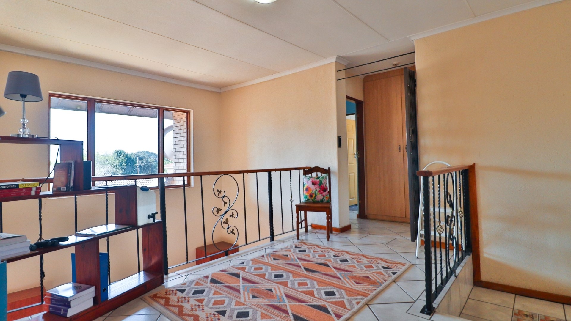 Additional features include a guest toilet and a study, which can also serve as a fourth bedroom. Upstairs, you’ll find the bedrooms with on-suite bathrooms and an informal TV lounge. The main bedroom offers ample cupboards, a balcony with a view, a spacious bathroom, and an air conditioner.