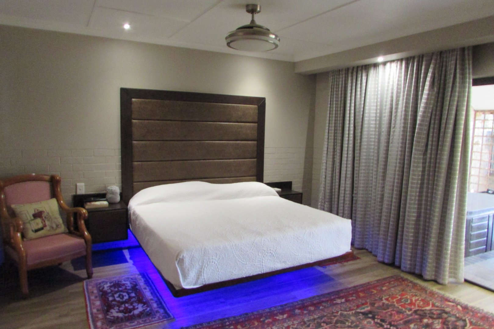 Entertainment Excellence: The dedicated braai room, complete with a built-in gas braai, jacuzzi, and serving station, opens to a lush garden shaded by mature trees—a perfect setting for memorable gatherings.