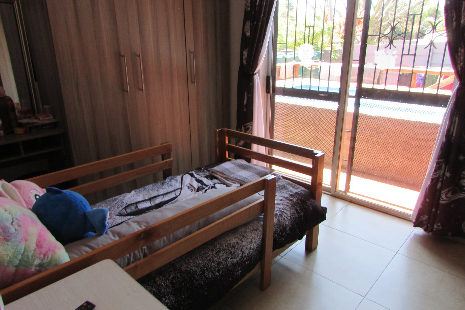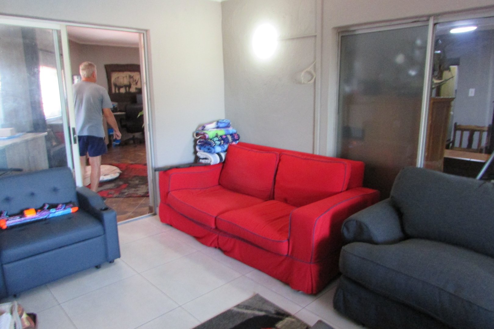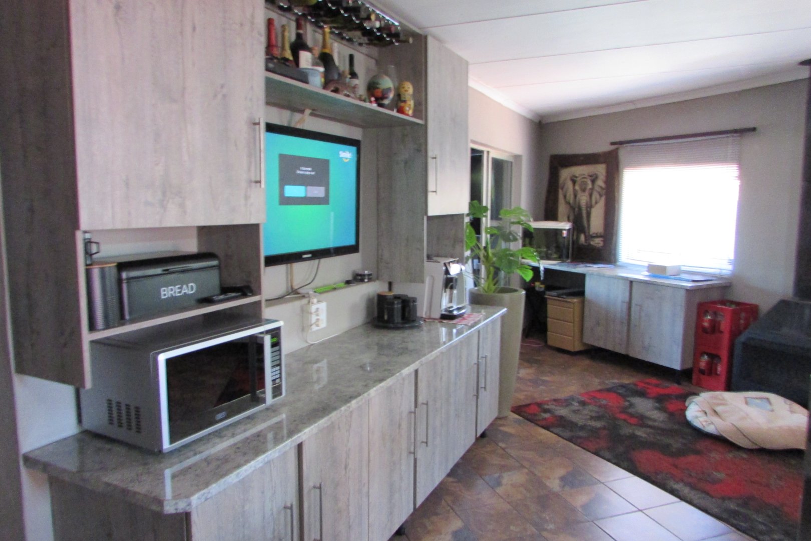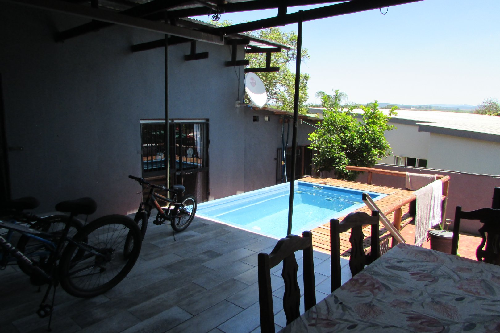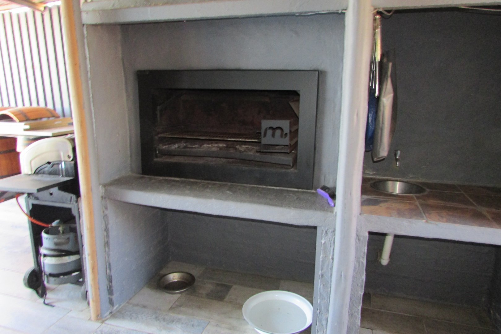 A large living and TV room flows effortlessly into the entertainment area, featuring a built-in braai and sparkling swimming pool — perfect for hosting friends or enjoying relaxed weekends at home.