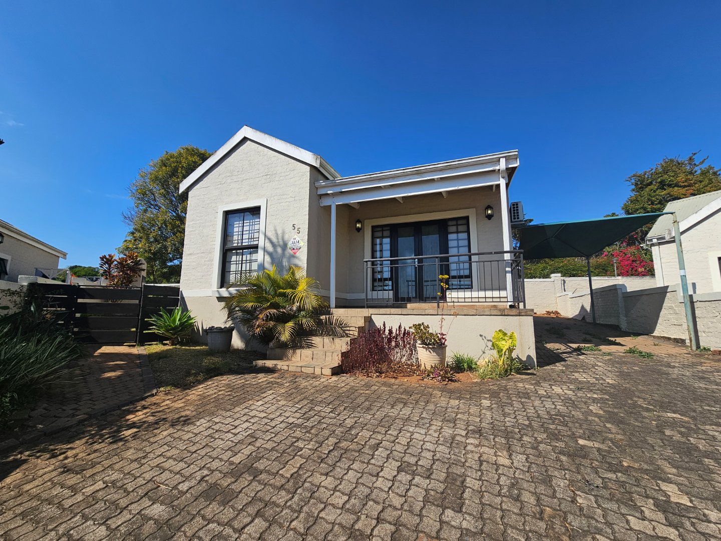 This 2 Bedroom home has a large garden with a built in braai. The kitchen is open plan onto the living area. Prepaid electricity installed.