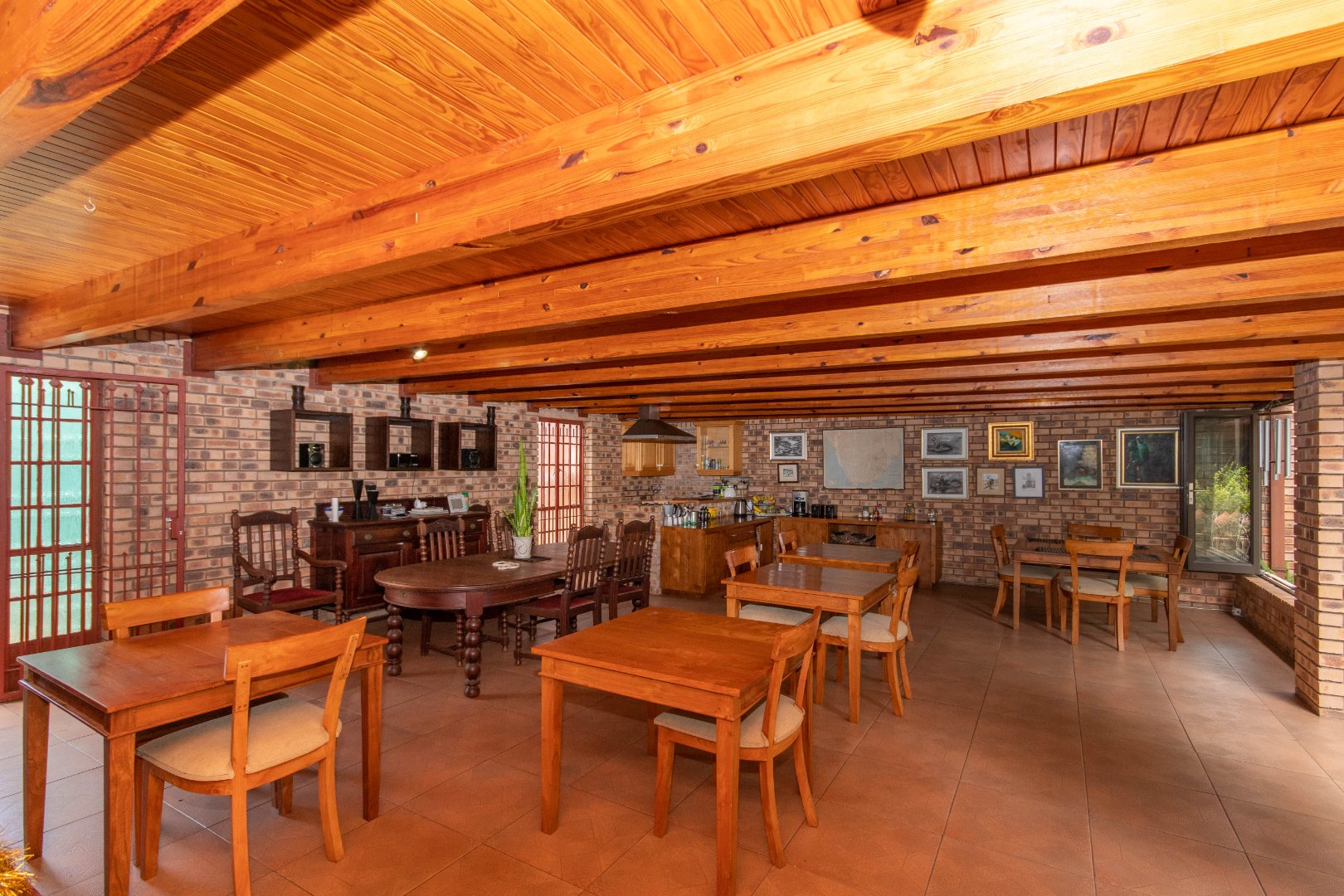 Spacious dining area with a dedicated breakfast kitchen