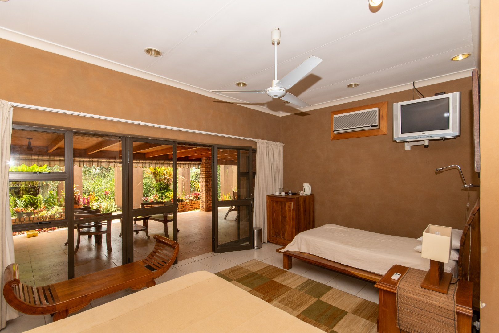 Each guest room features a private patio and an outdoor shower