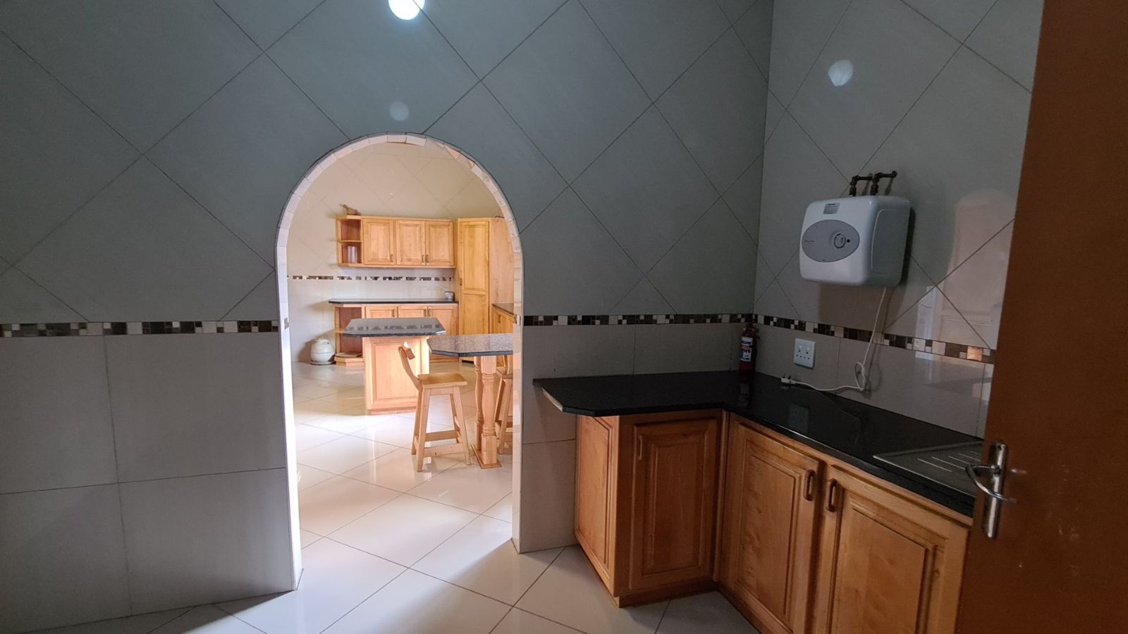 Kitchen is adjoining a scullery and laundry.