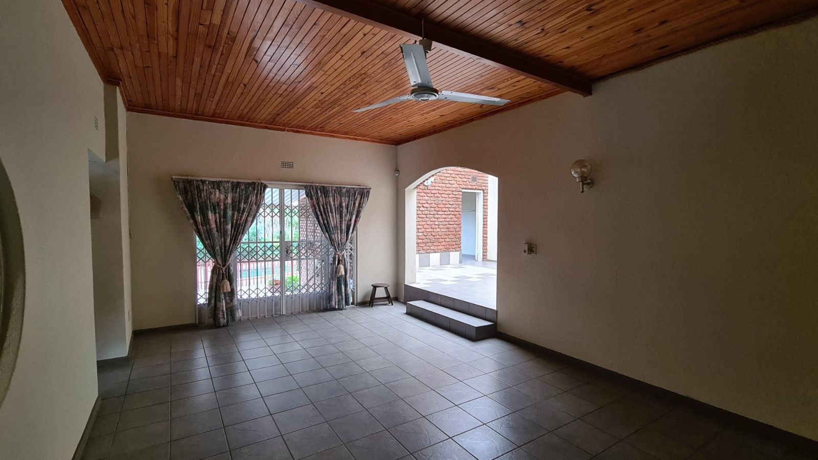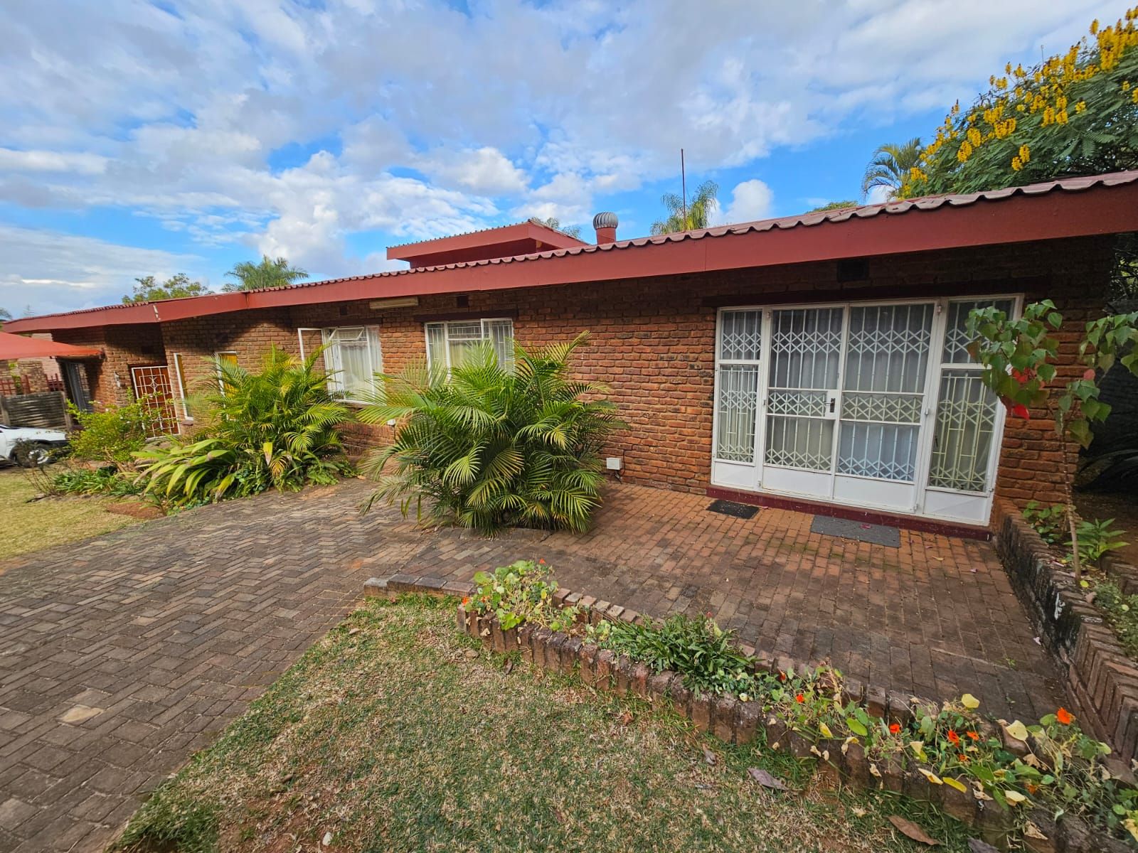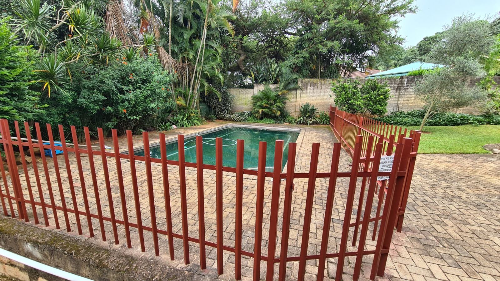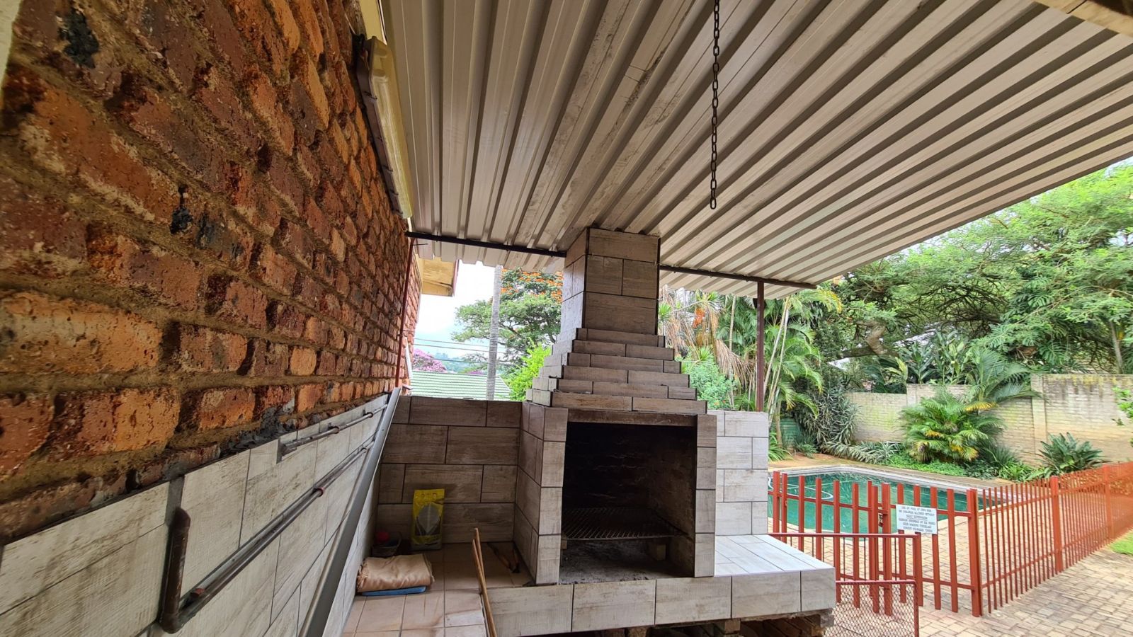 A very large stoep with built-in braai leading onto the lawn where the fully fenced swimming pool awaits you.